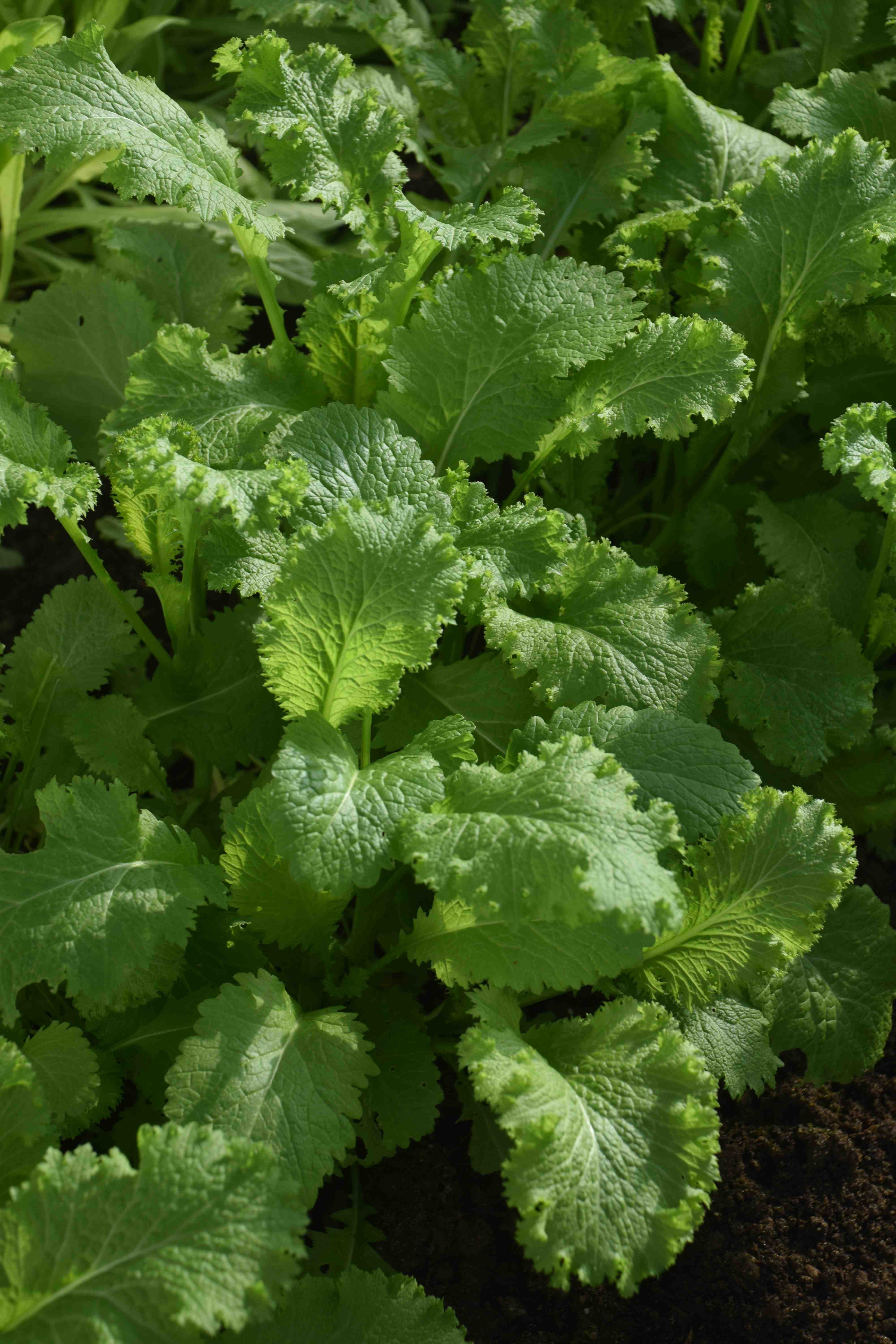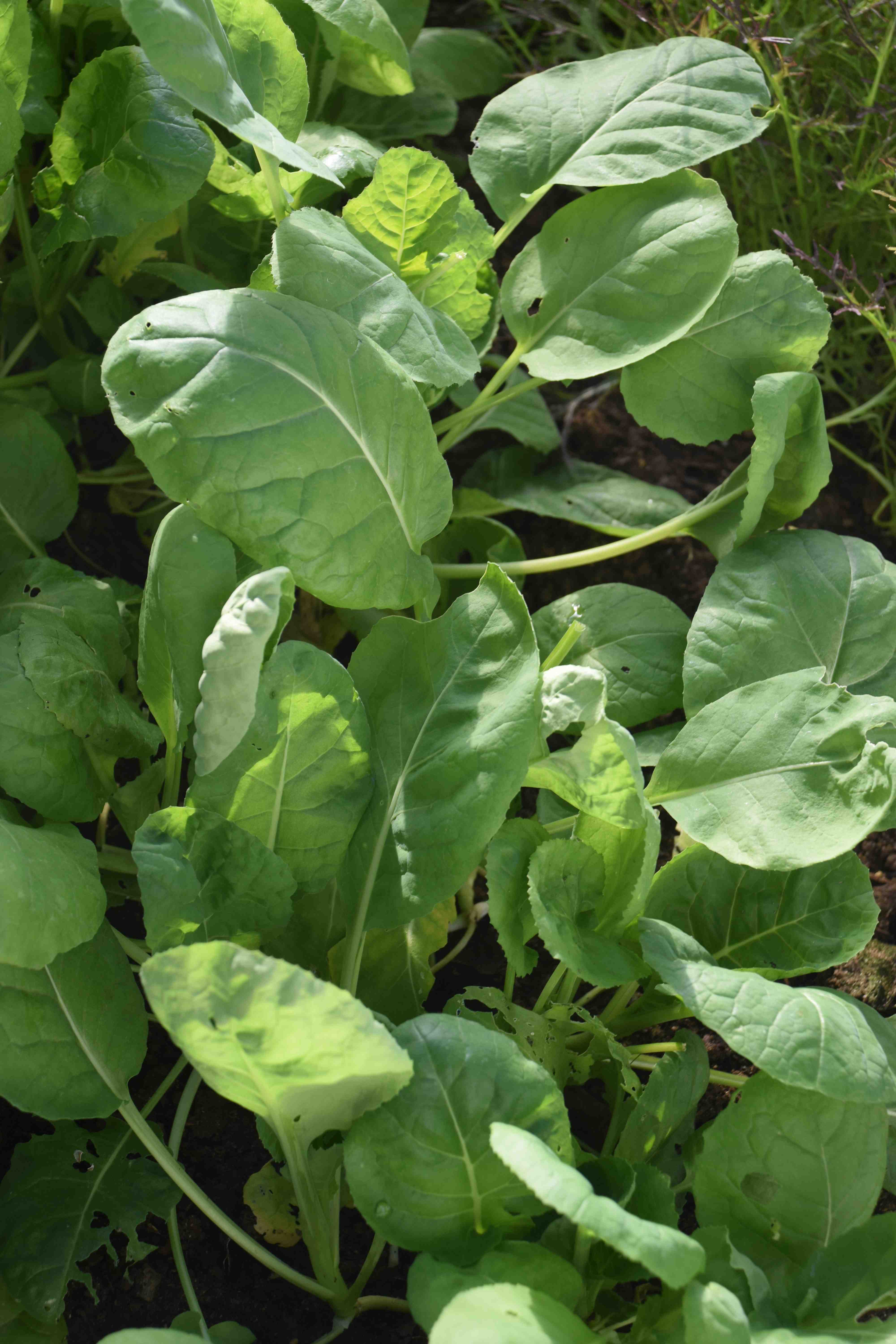These greens are all green so far but ‘Ruby Streaks’ is a purple tinted mustard that adds colour and some bite to salads. This can be sown at any time and is very fast and productive. I think this is a old Japanese variety (or descended from one) and, like all mustards, has important cancer-fighting chemicals.