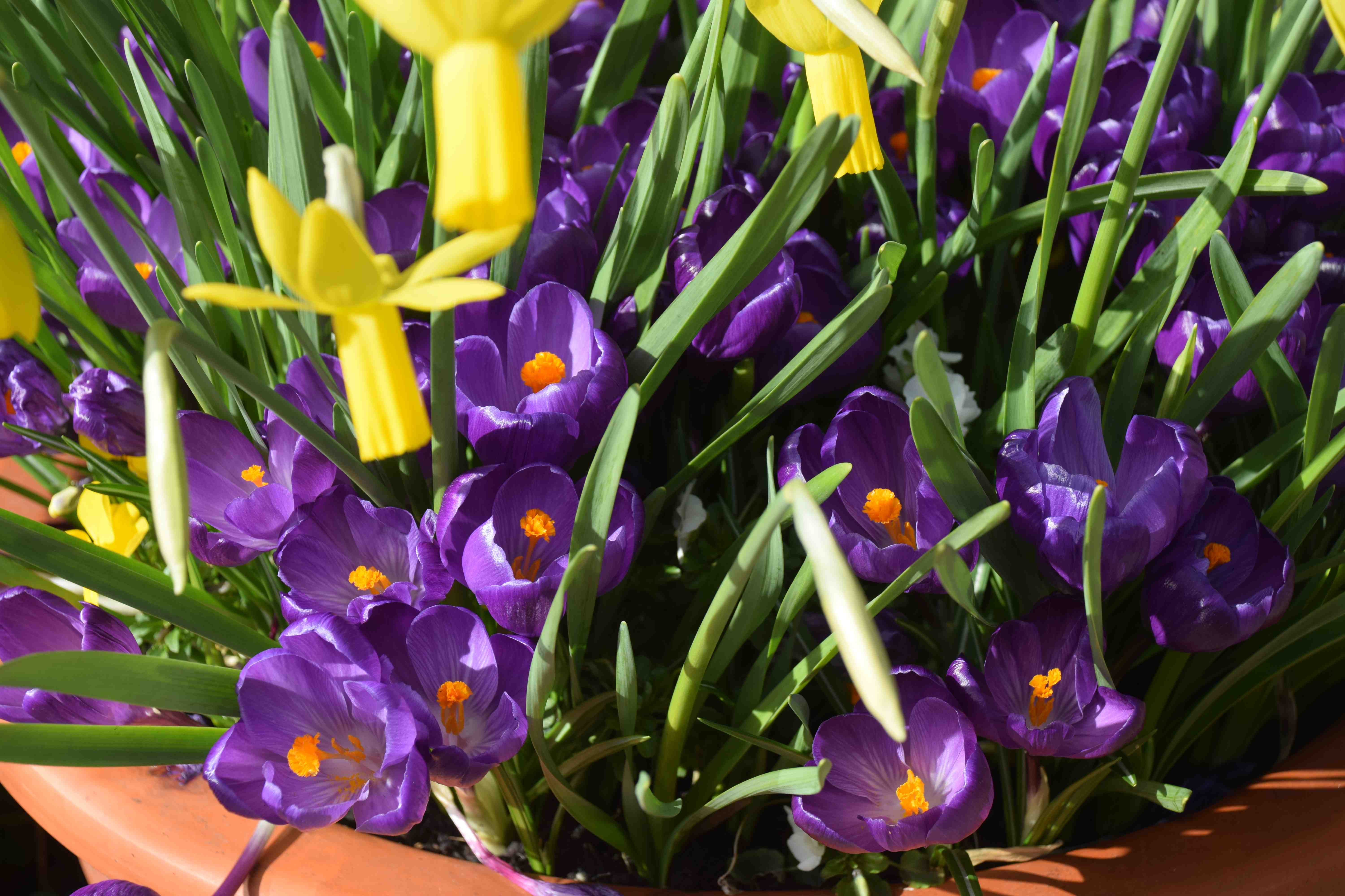Well done everyone that got yesterday’s Macro Monday right. It was indeed a crocus. Although I tend to prefer the smaller Crocus chrysanthus and have an unfortunate tendency to think of the Dutch crocus as being a bit big and vulgar, I planted a good number of the big ‘uns last autumn but I restricted my planting to just the purple and lavender kinds. Most were planted in grass but I packed some into a couple of pots with some yellow violas and some ‘Rapture’ daffodils. I planted some of these daffs two years previously in grass and they have been brilliant so I had no problem packing them in with the crocus.