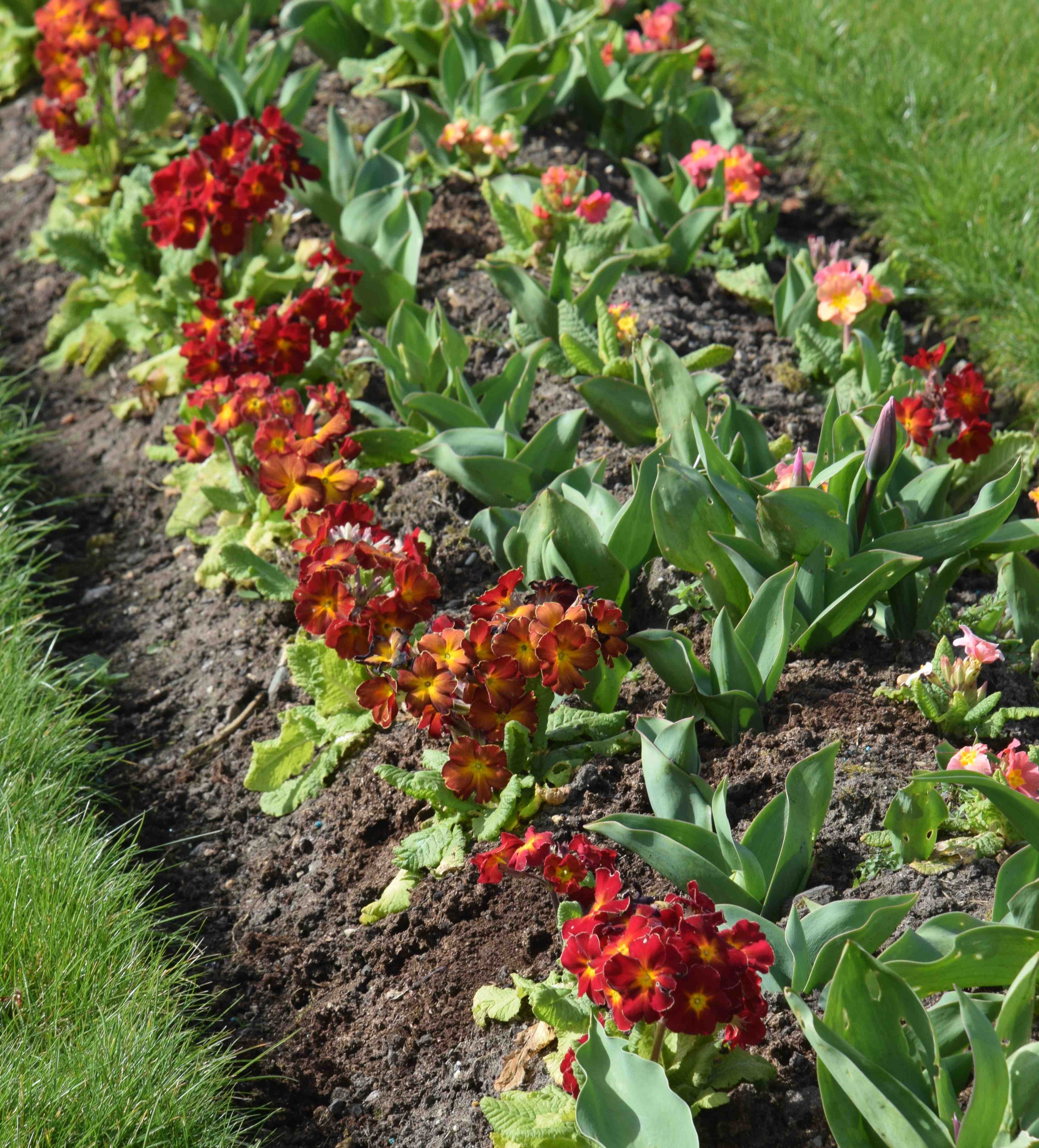 I have forgotten to take a photo of ‘Reverie’ which is an amazing blue and possibly the best of the lot. But below is ‘Grand Canyon’ which is ‘glint of the sun on desert rocks’. In fairness the colours are a bit sombre really but the double orange tulips are still in bud so the effect should be better then. Despite my efforts I did not have enough plants for this bed so had to fill in with ‘Desert Sunset’ (at the other side of the bed) which I have to say I like a lot more.