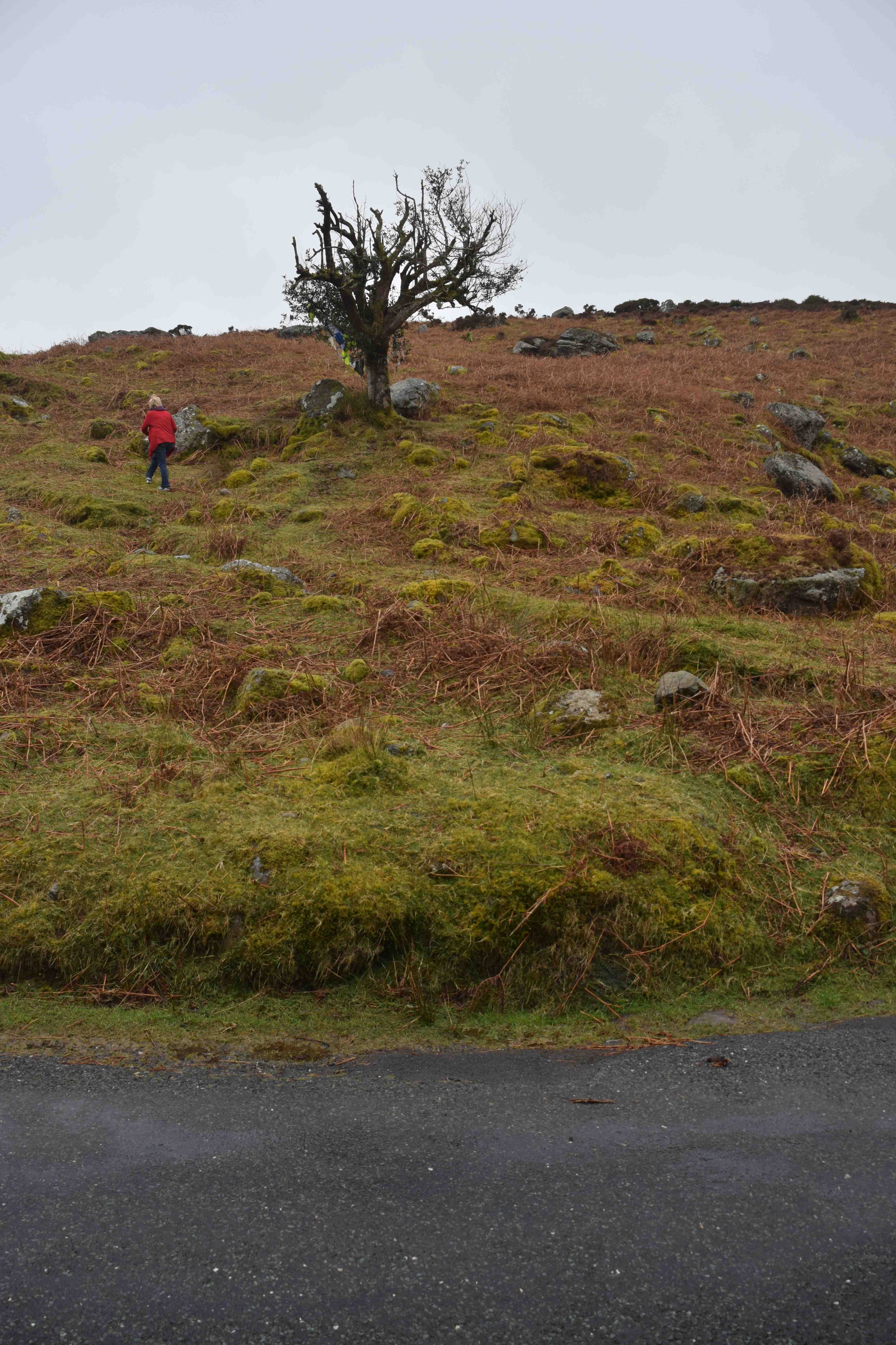 After the sanity-stretching experience recounted yesterday, I visited ‘The Magic Tree’, a profoundly ill holly tree beside a road near the Mahon Falls, not far from Dungarvan, Co. Waterford. It is not that easy to find, especially on a day when the clouds have descended so low that you are driving through them! But we did and that meant not just seeing the tree but its magic!