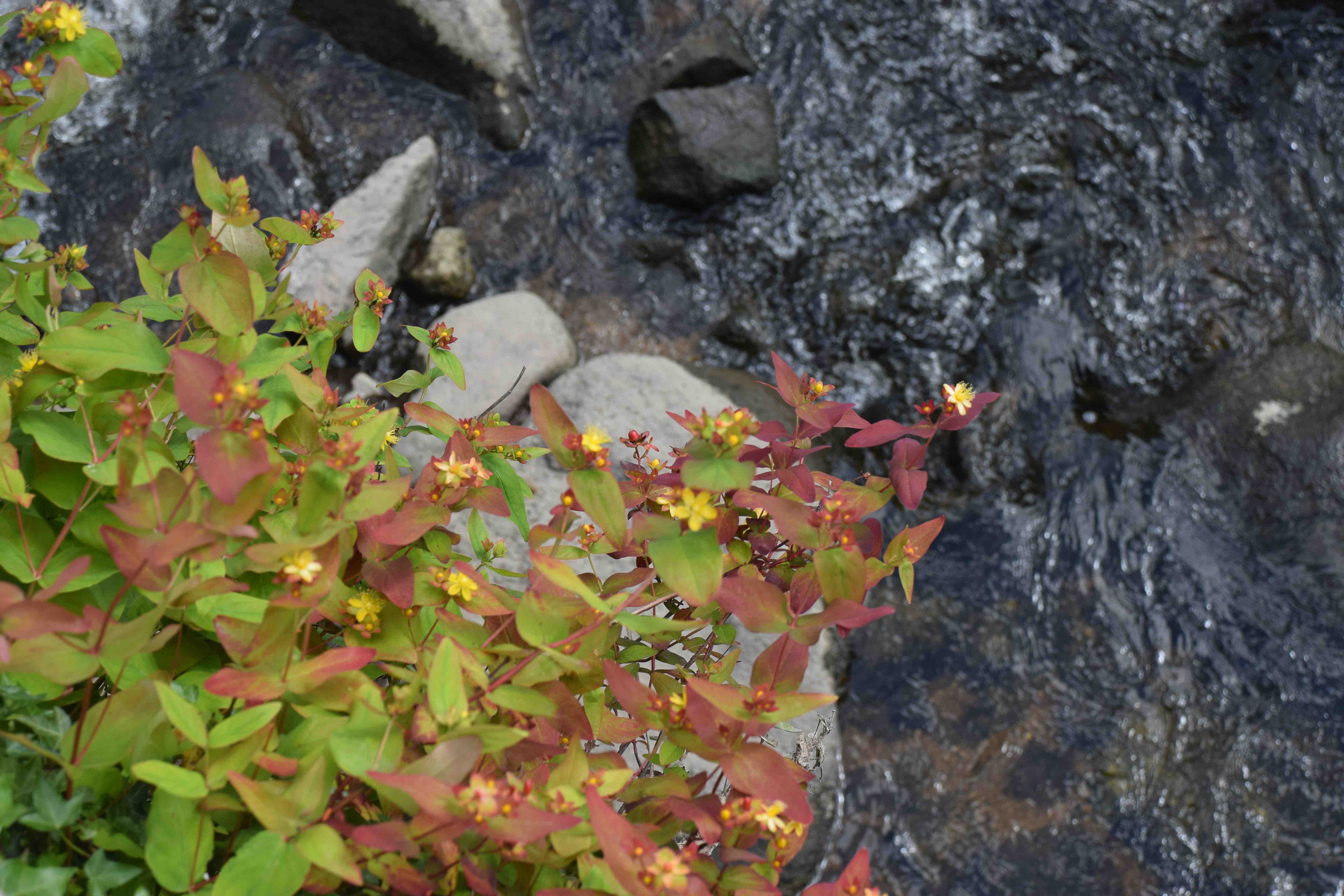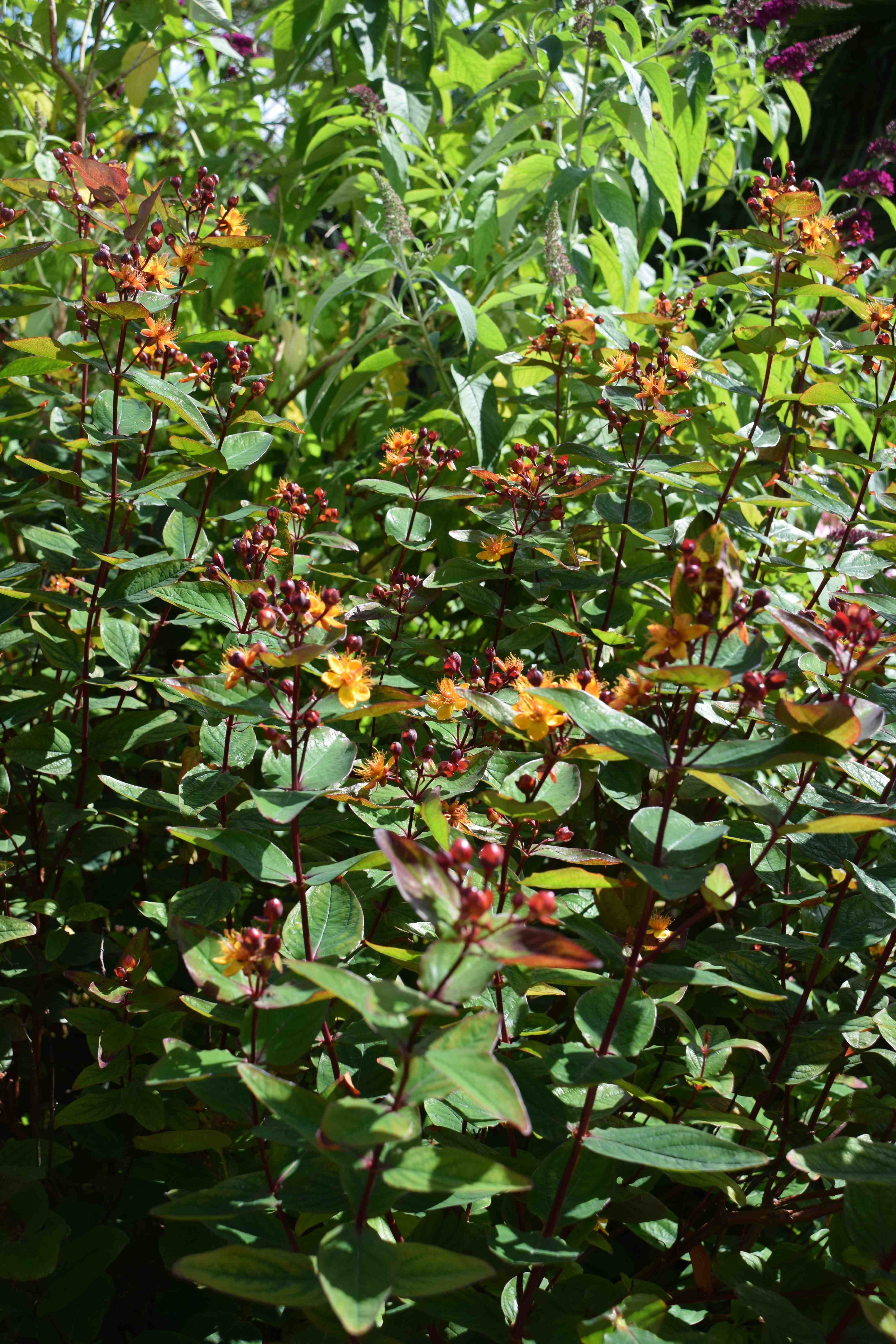 Below is a hypericum growing wild in Ireland, I think it is H. androsaemum, beside the River Barrow, looking particularly fine with red-flushed new growth.