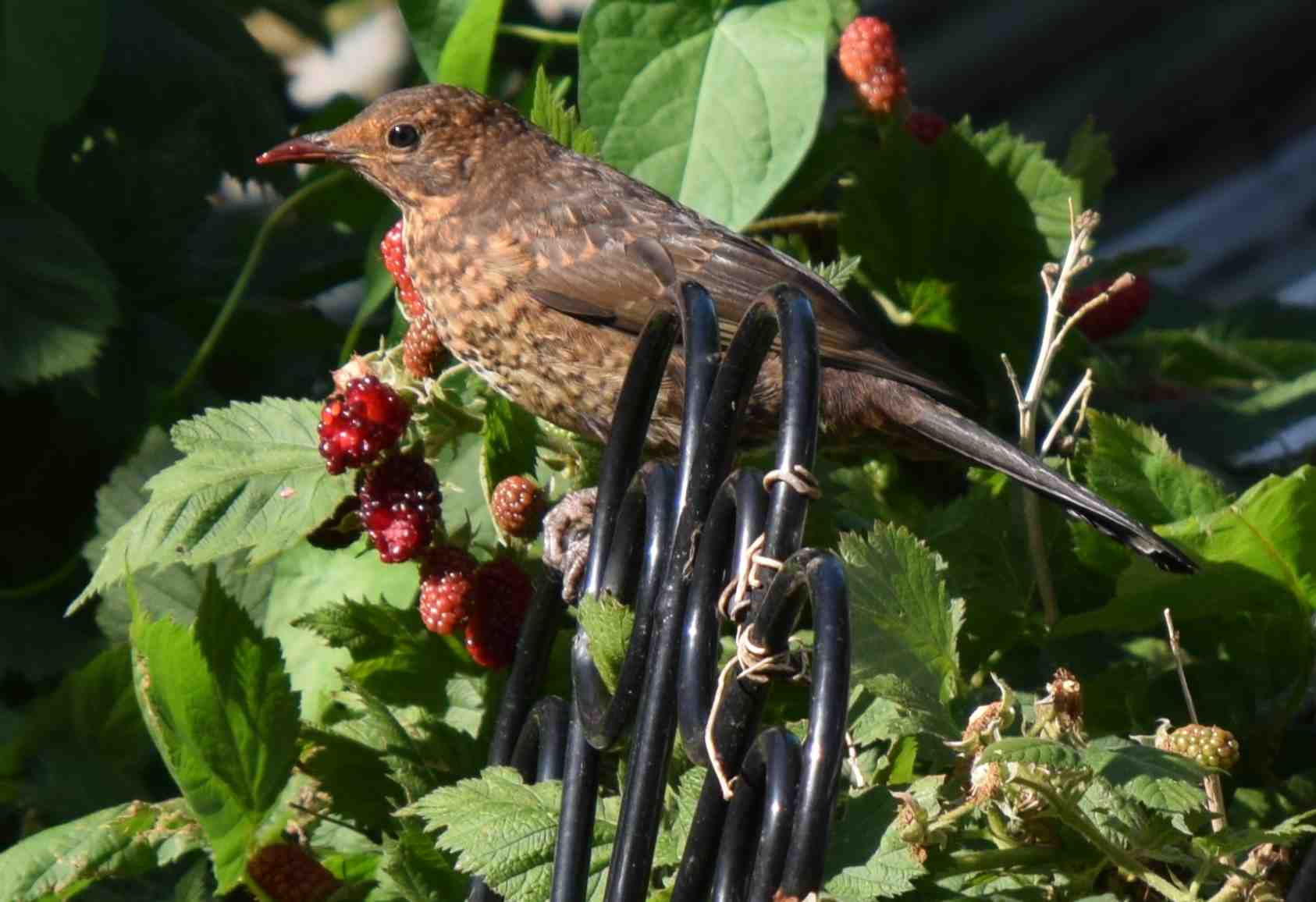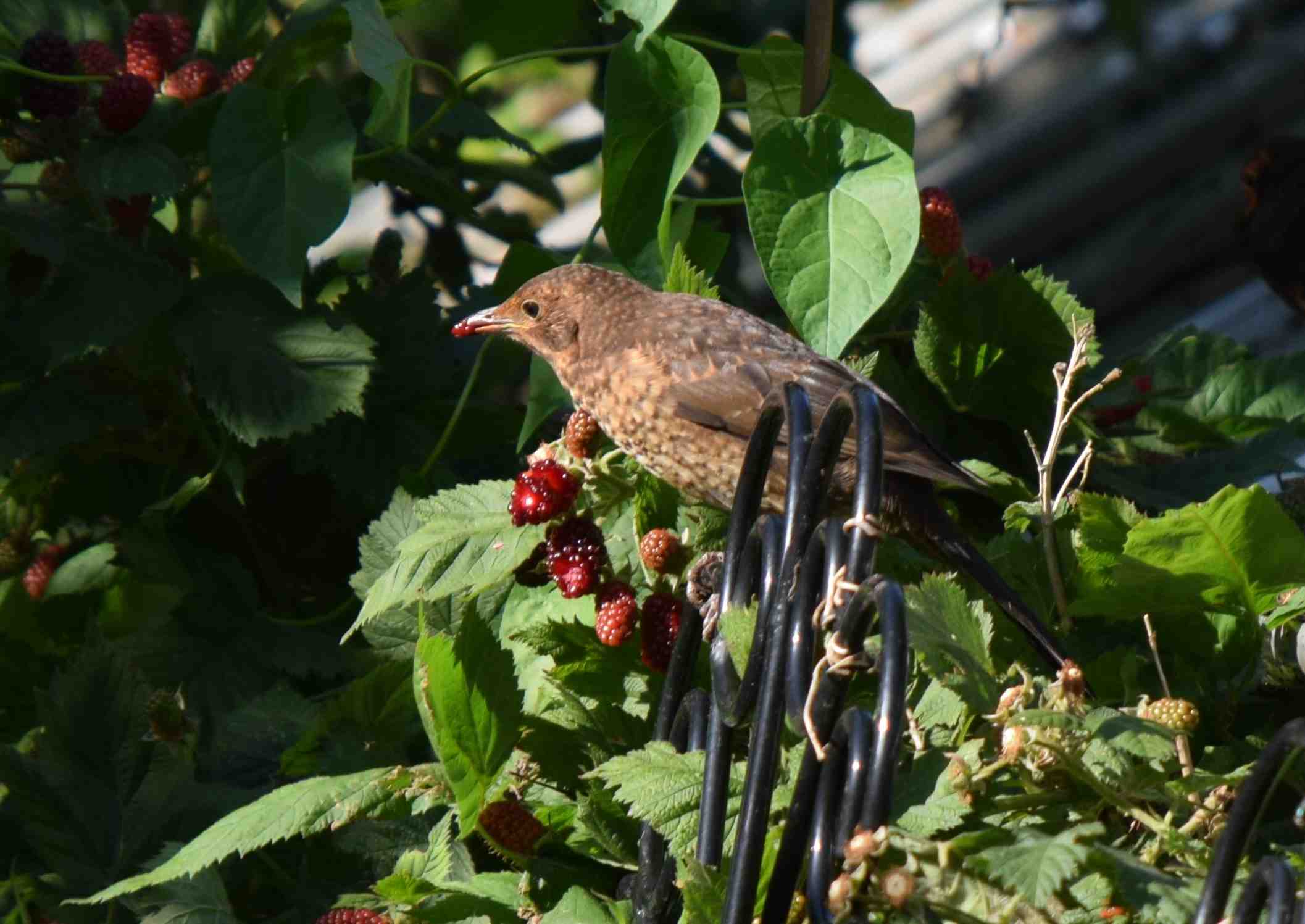 I am reluctant to be such a meany, especially as the song of blackbirds (Turdus merula) in the evening is such a wonder, but I really dislike blackbirds at this time of year! Every year, as soon as the Silvanberries against the greenhouse start to turn red (a week away from being ripe enough to eat) the blackbirds move in.
