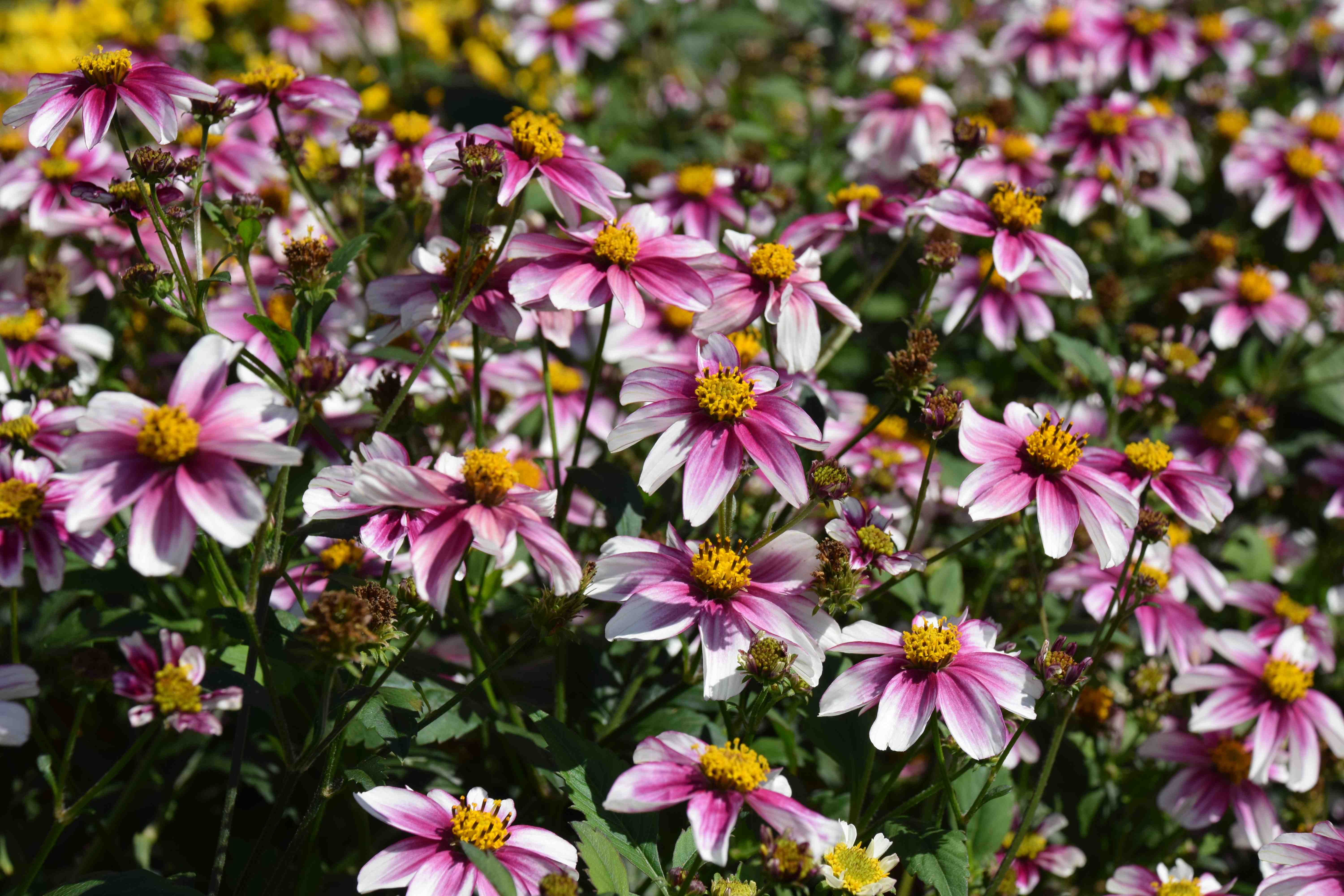 So now we have a bicoloured pink and white bidens. Where did the genes for that come from? It looks more like one of those newish coreopsis but has a spreading habit and although the flowers did not completely cover the foliage (thank goodness), there was a haze of pretty flowers that would work so well in pots and also at the front of a border. Imagine this with lavender or as a ground cover round an agapanthus.