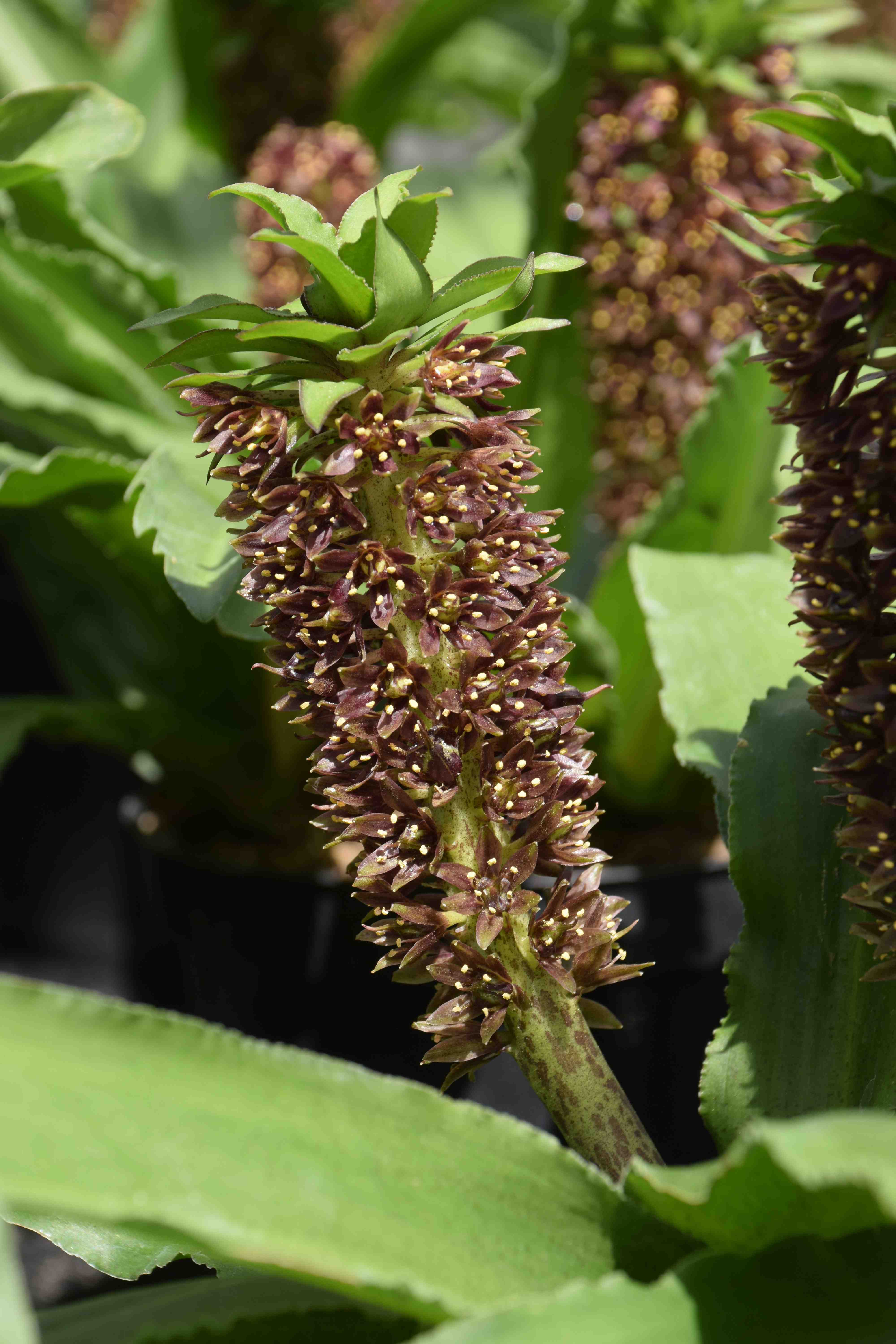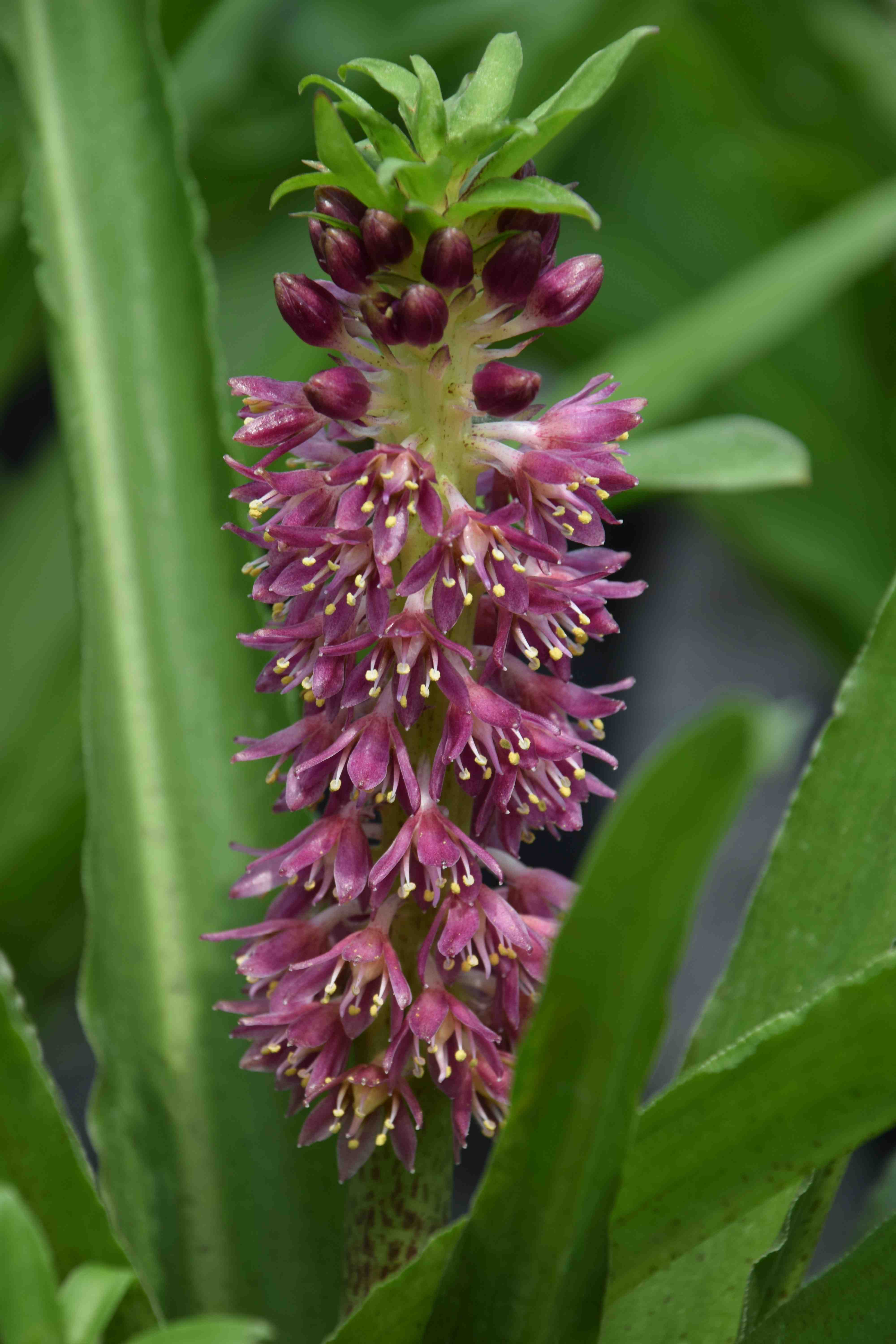 So it was interesting to see the new Aloha Lilies, bred by CalBulbs from the South African Eucomis vandermerwei, one of the smaller species, one that has rather narrow, wavy-edged leaves speckled with maroon and dark flowers. I think it is a bit confusing that they are named Aloha Lilies which suggests that they have something to do with Hawaii but there are worse names I guess.