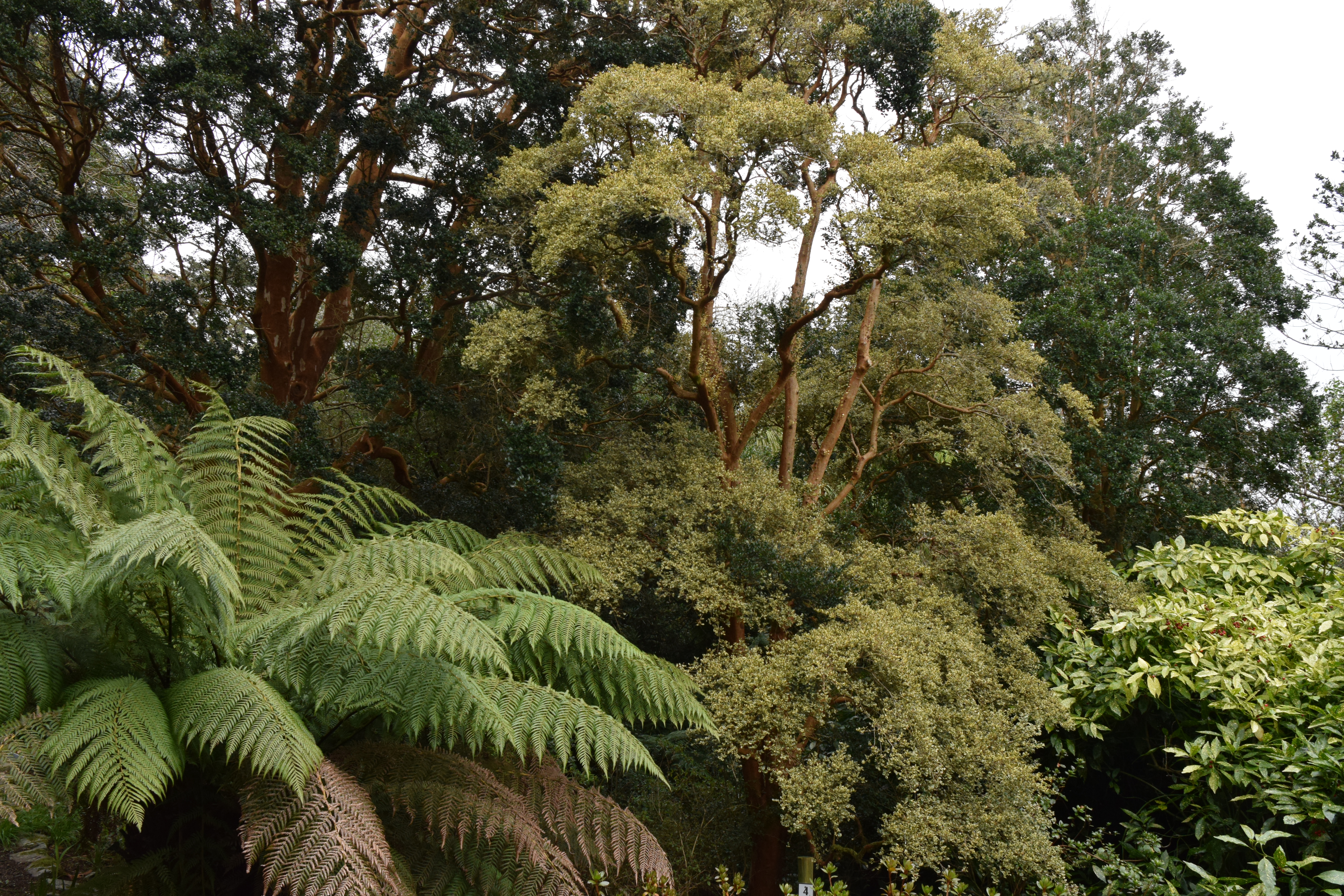 The garden is most famous, apart from being very mild, for the variegated form of Luma apiculata – ‘Glanleam Gold’ (middle photo) that was found in the garden. The species is too tender to survive in most parts of the UK but can thrive in mild, westerly areas and in the west of Ireland where it can become a small tree with small evergreen leaves and masses of small, four-petalled flowers in summer (as opposed to the five-petalled flowers of Myrtus to which it is related – in fact Myrtus is an old world genus whereas Luma is South American). The bark of Luma apiculata is thin, cinnamon and peels beautifully. Although most gardeners may struggle to keep this alive in their gardens, where it does grow well it can be invasive, seeding freely from the fleshy, edible berries.