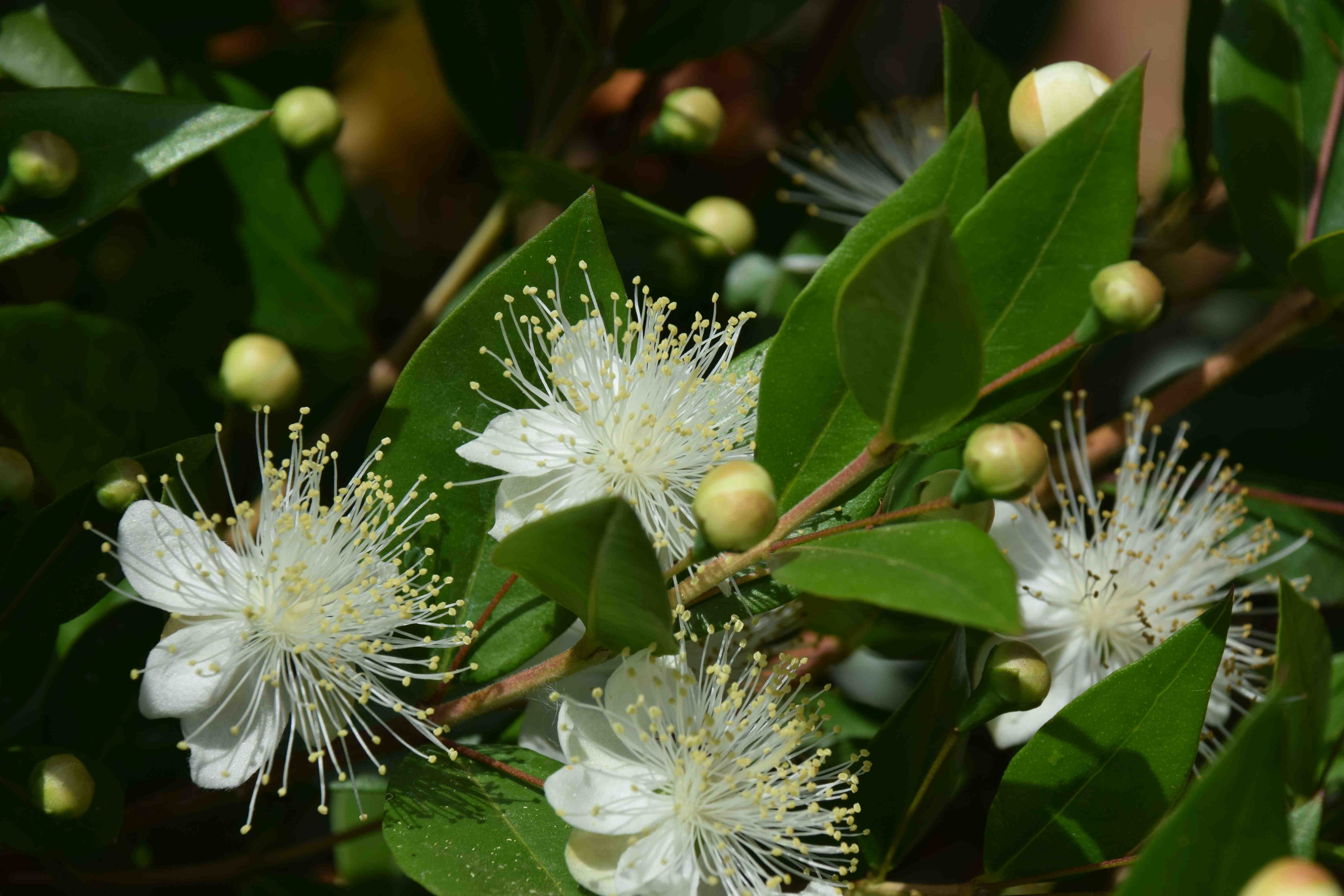 Usually considered to be just that little bit too tender to be reliable in most gardens in the UK, I have found myrtle (Myrtus communis) to be reliable in a raised bed facing south where it has grown for 15 years and come through most winters unharmed. It is a Mediterranean native and has a long association with the myths and legends of the ancient Greeks and Romans. To the Greeks it was associated with immortality because it is evergreen and it was also associated with love. It was linked with Venus and Aphrodite. Wreaths of myrtle were worn around the waist to make the wearer irresistible. But it was also a component of bride’s wedding celebrations and was used as such in Germany more recently and it has links with that most famous of German brides, Victoria. Her wedding bouquet was of snowdrops but when she visited Albert’s grandmother in 1845 she was given a posy that contained myrtle from her garden and from that was grown a specimen that was planted at her home, Osborne House on the Isle of Wight. It has been traditional ever since to include a spray of the plant in Royal wedding bouquets, a tradition continued by Kate Middleton.