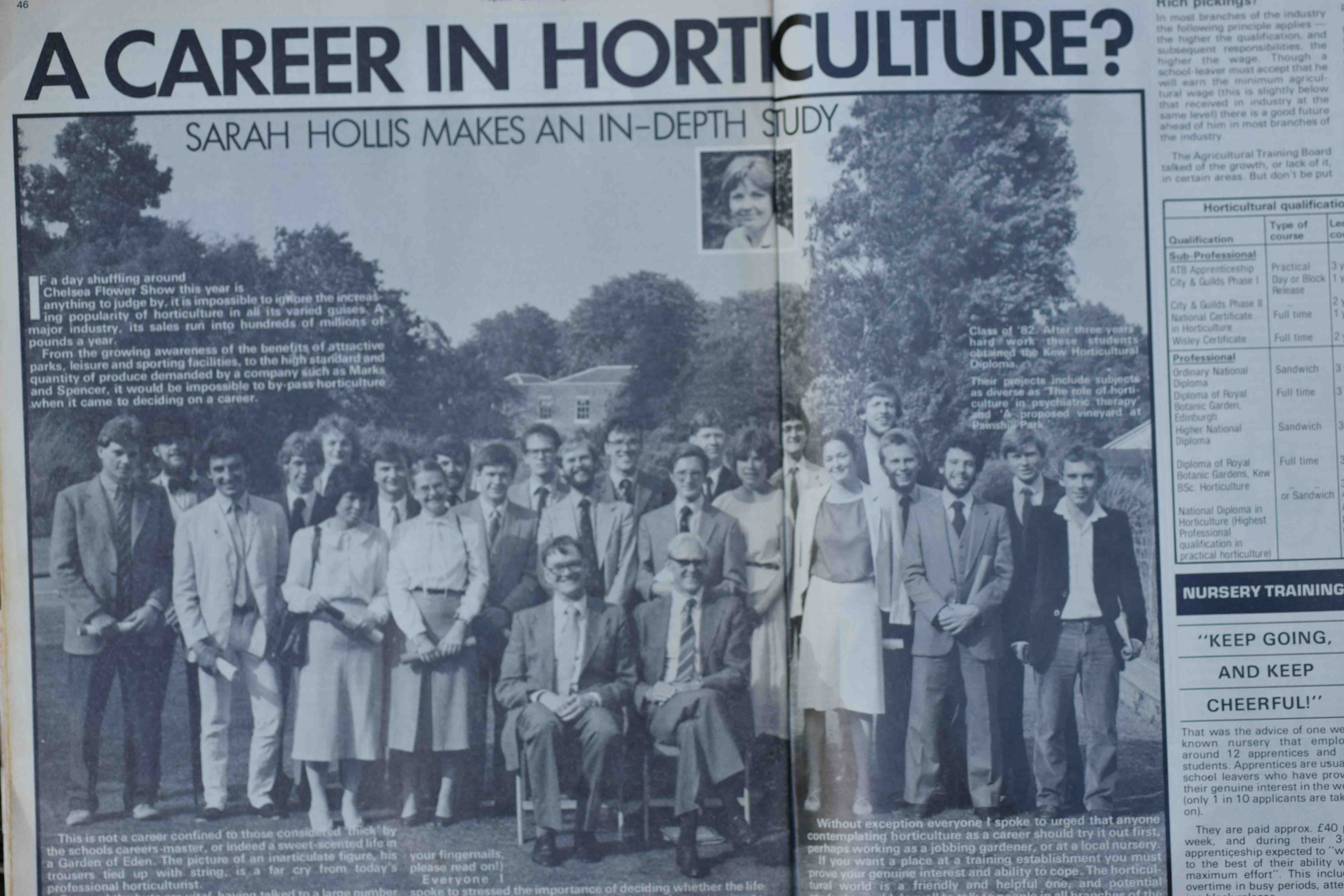 And here was an article that was in Popular Gardening in January 1983 with a photo of the Course 17 at RBG Kew. I am hiding at the back, 9th from the left. I joined Course 16 but did a sandwich year so rejoined Course 17. Leo Pemberton is sitting at the front right. At least I am still going, unlike Popular Gardening!