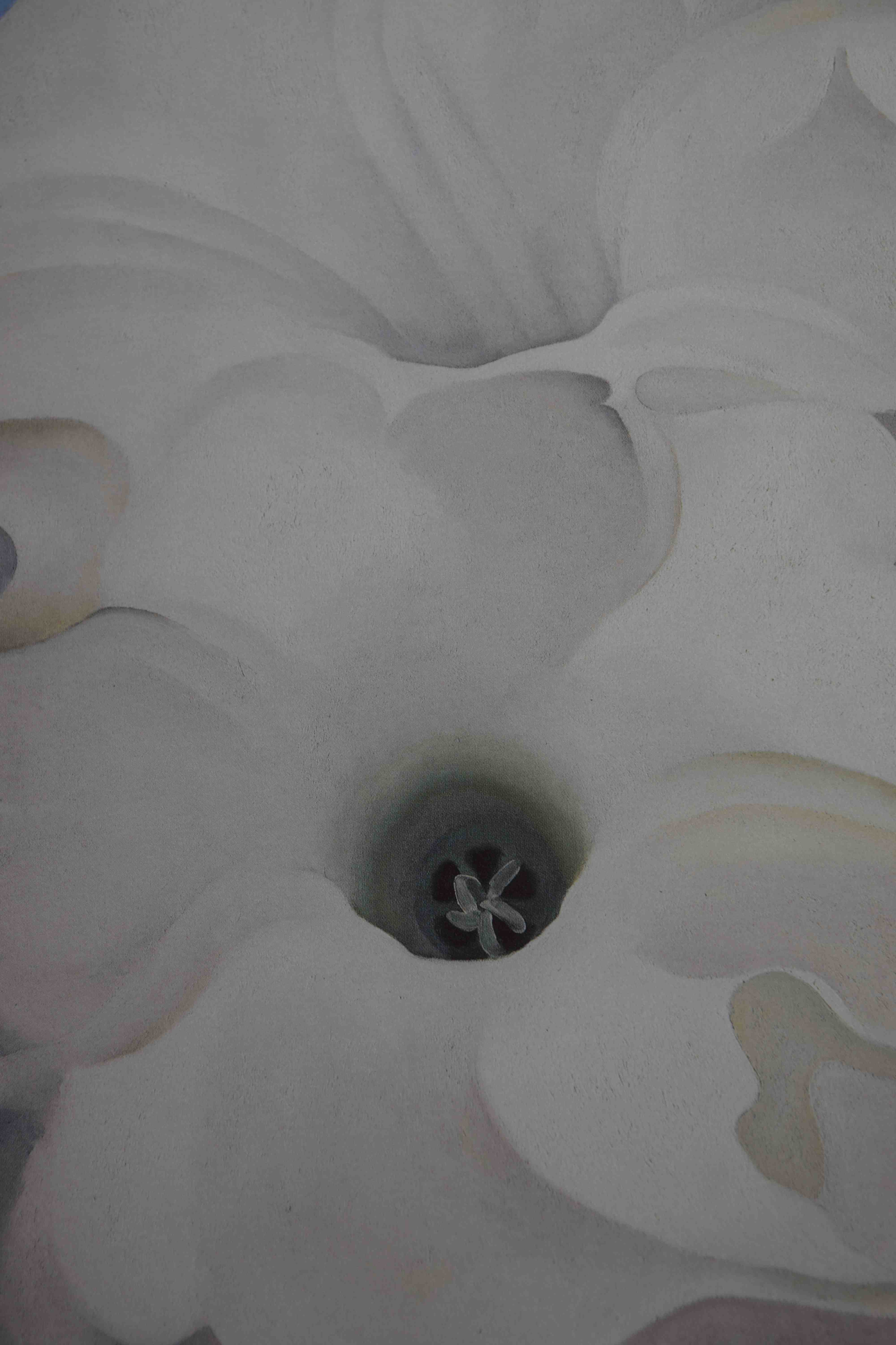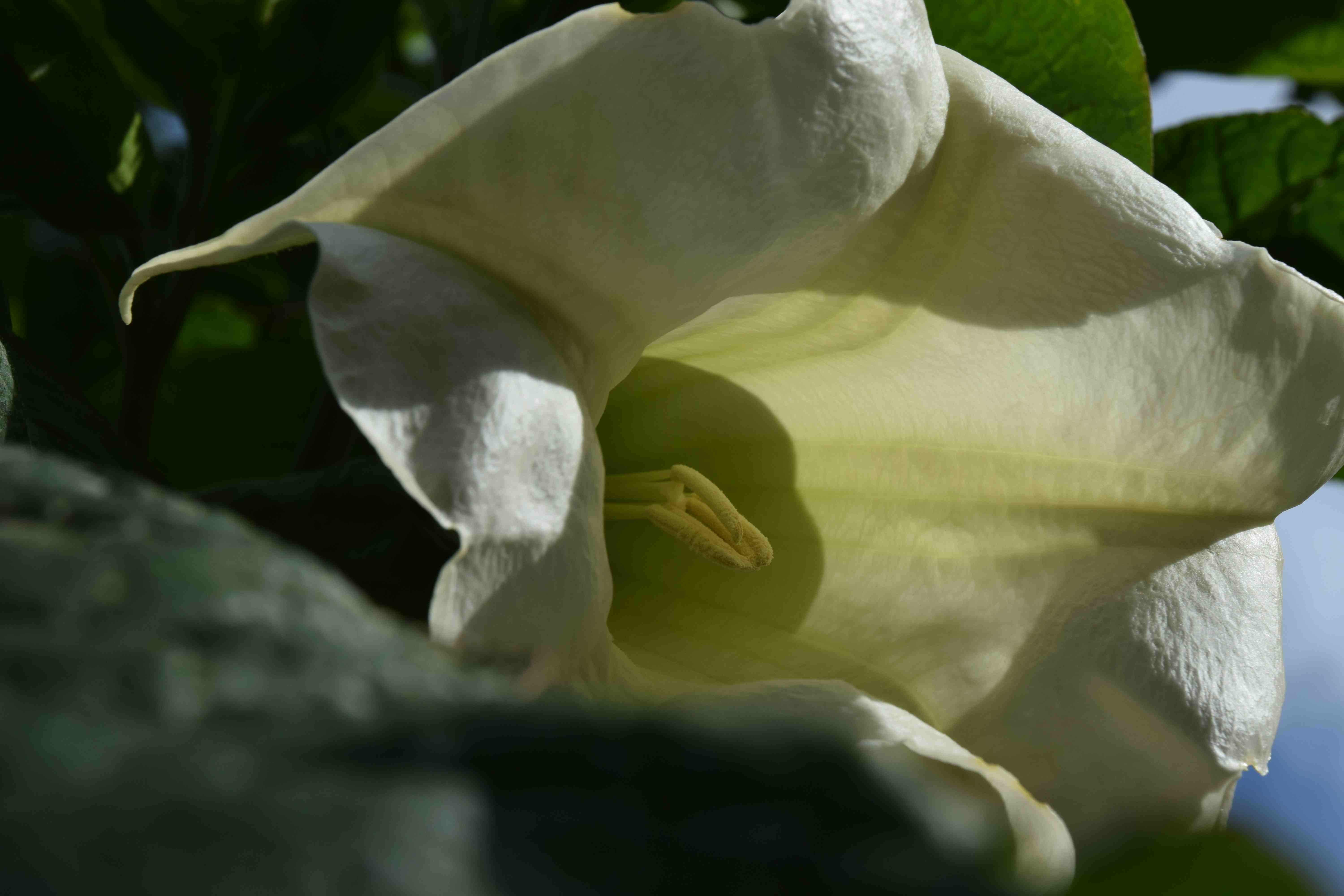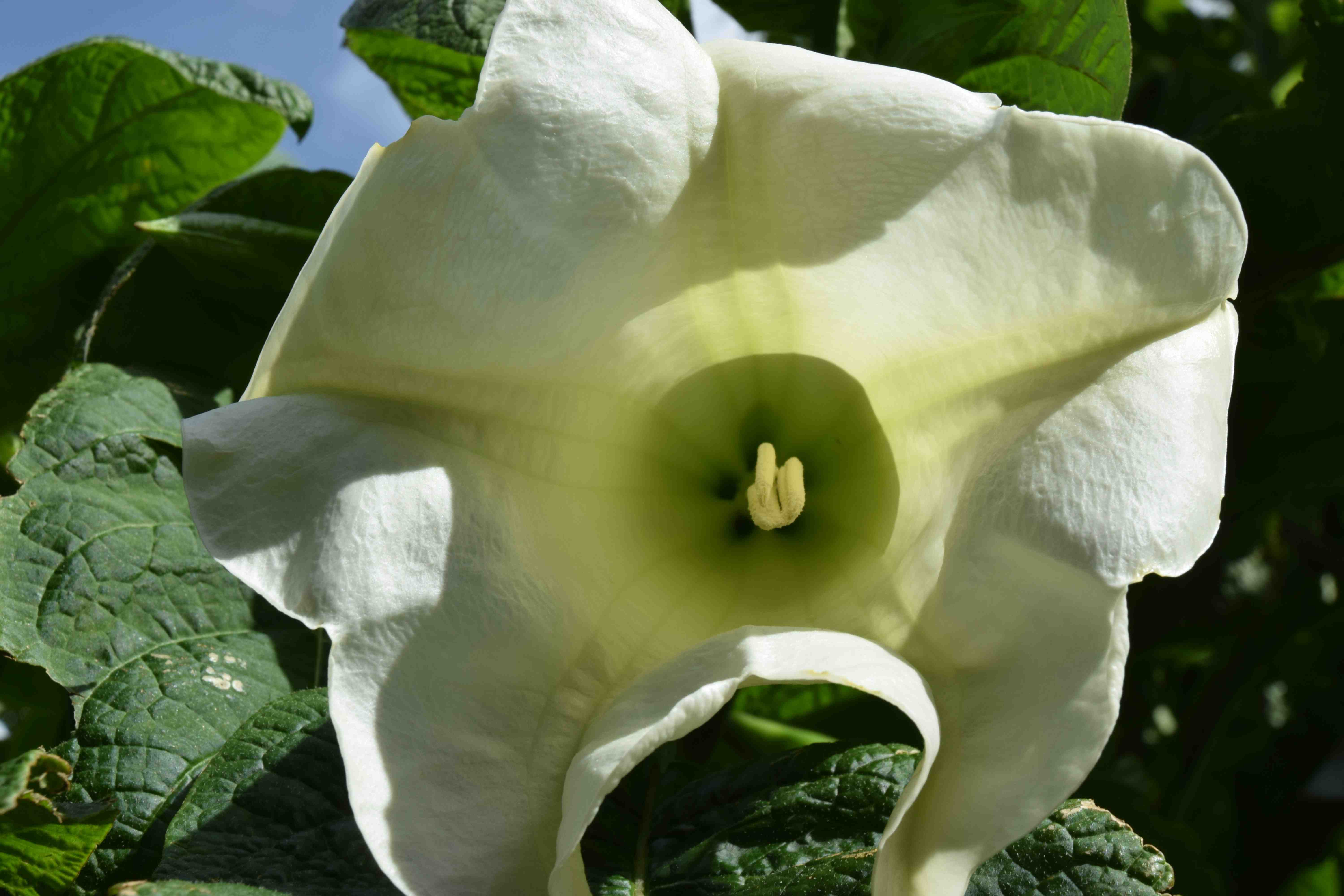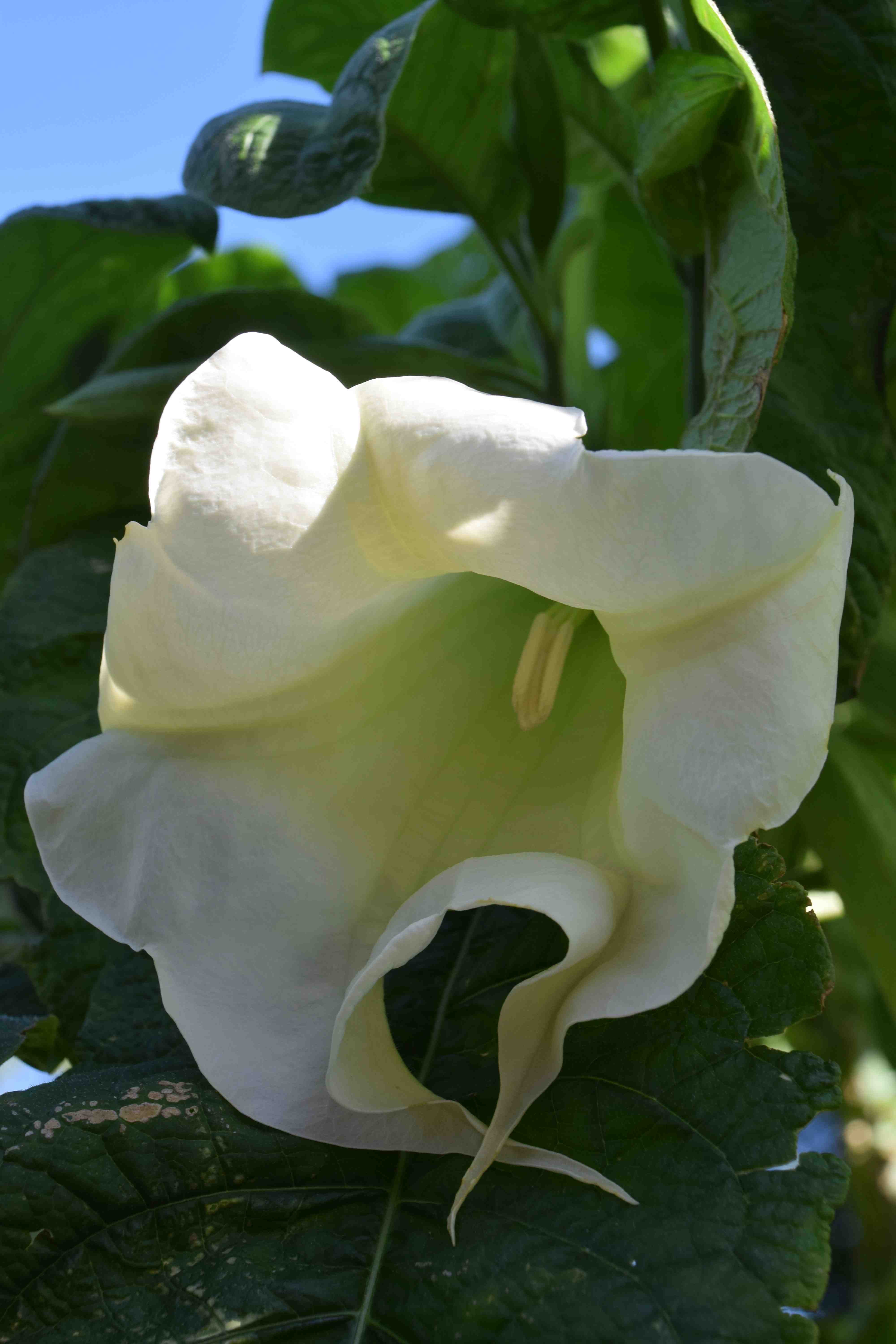 White brugmansias always remind me of Georgia O’Keeffe, the American artist. I love her paintings even though the non-floral ones often have a touch of the gynecological about them! It was her paintings of daturas that first attracted my attention and that I still find the most alluring. I know that daturas and brugmansias are not quite the same but they are close enough! *