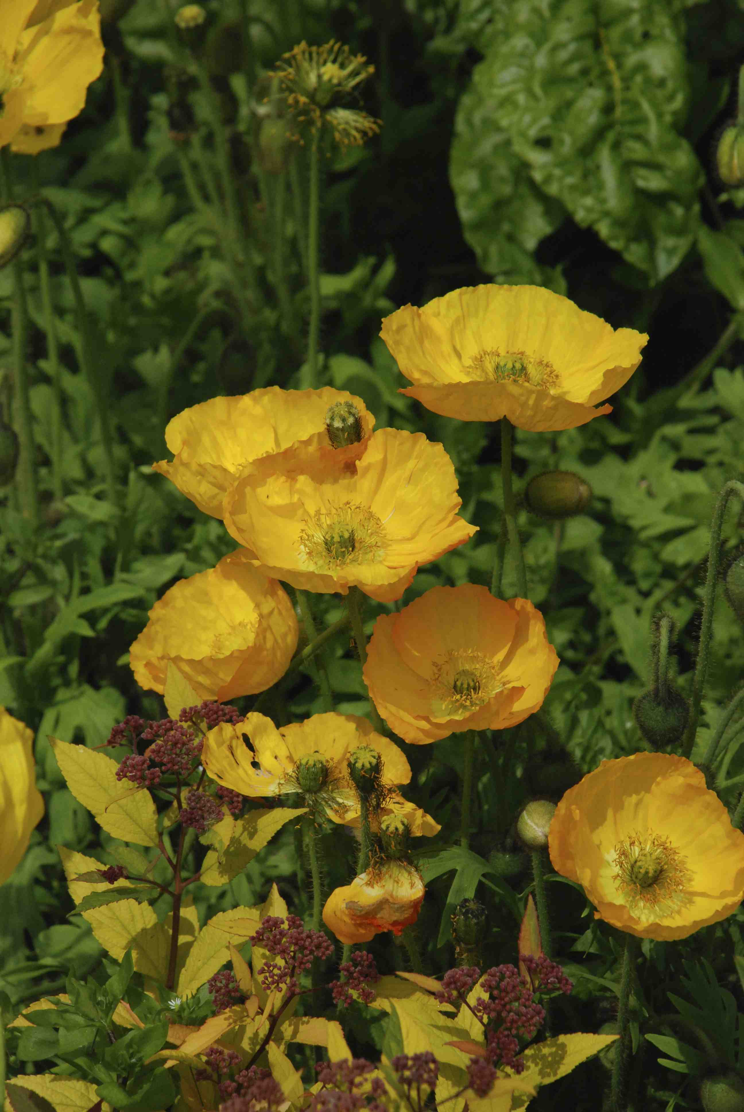 For once the word sounds like what it means – nudi is naked. ‘cauli’ is the stem and plants that have no stem, like the carline thistle, are acaulescent. Plants that produce their flowers direct from the stem or bark, like the Judas tree (cercis) are ‘cauliflorus’. So the poppy here is the common Iceland poppy, well known as Papaver nudicaule because the flowers are produced on stems that grow from the basal rosette of foliage and have no leaves – hence they are naked. Of course nothing is simple and this has had its name changed and is now Papaver croceum (croceum means gold – as in ‘rich as croesus’).