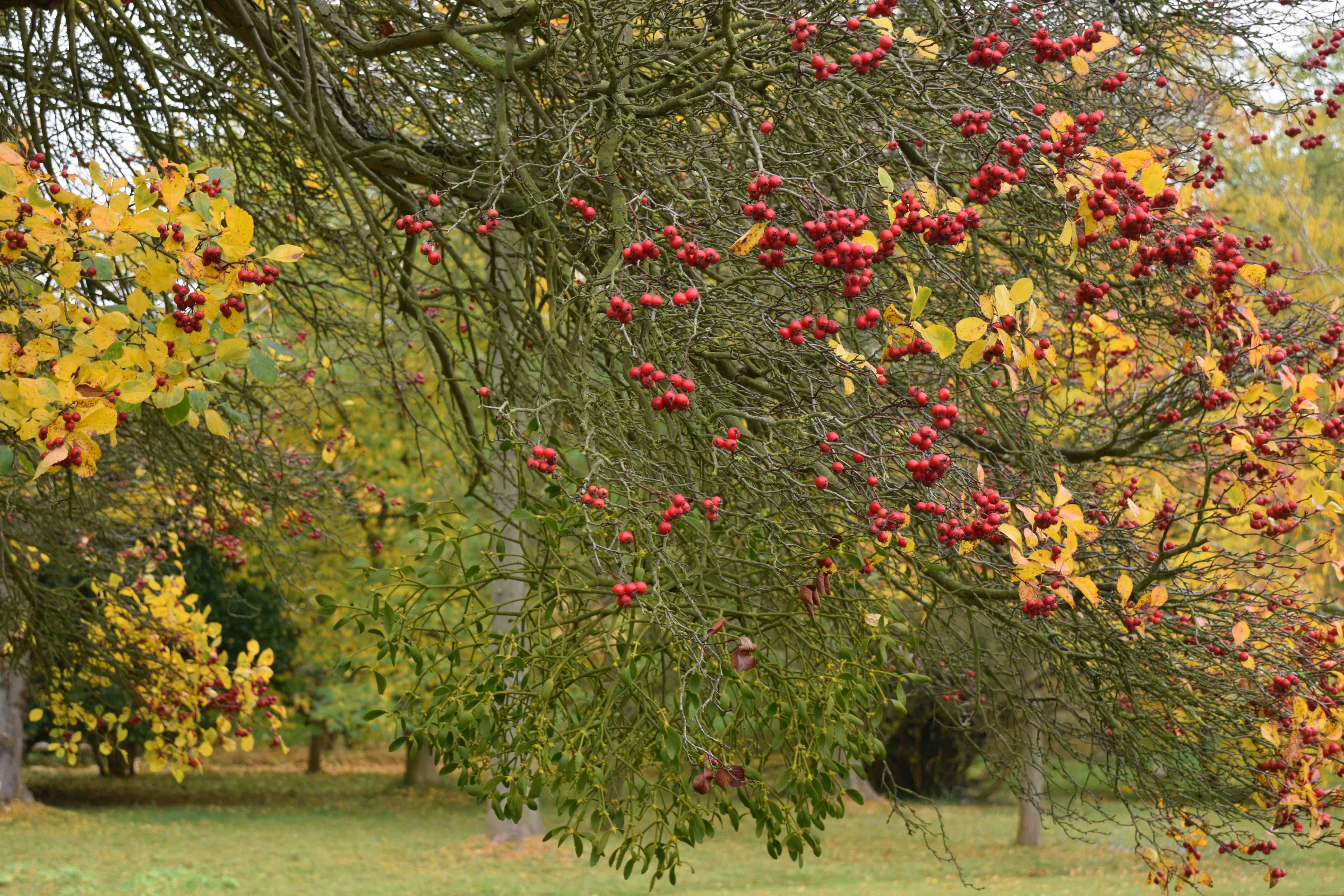 Mistletoe can grow on a wide range of plants and is most common on poplar, lime (above)  and apple though I have seen it on other Rosaceae such as chaenomeles and crataegus (below) and acer. The most ‘magical’ is from oaks but that is not common.