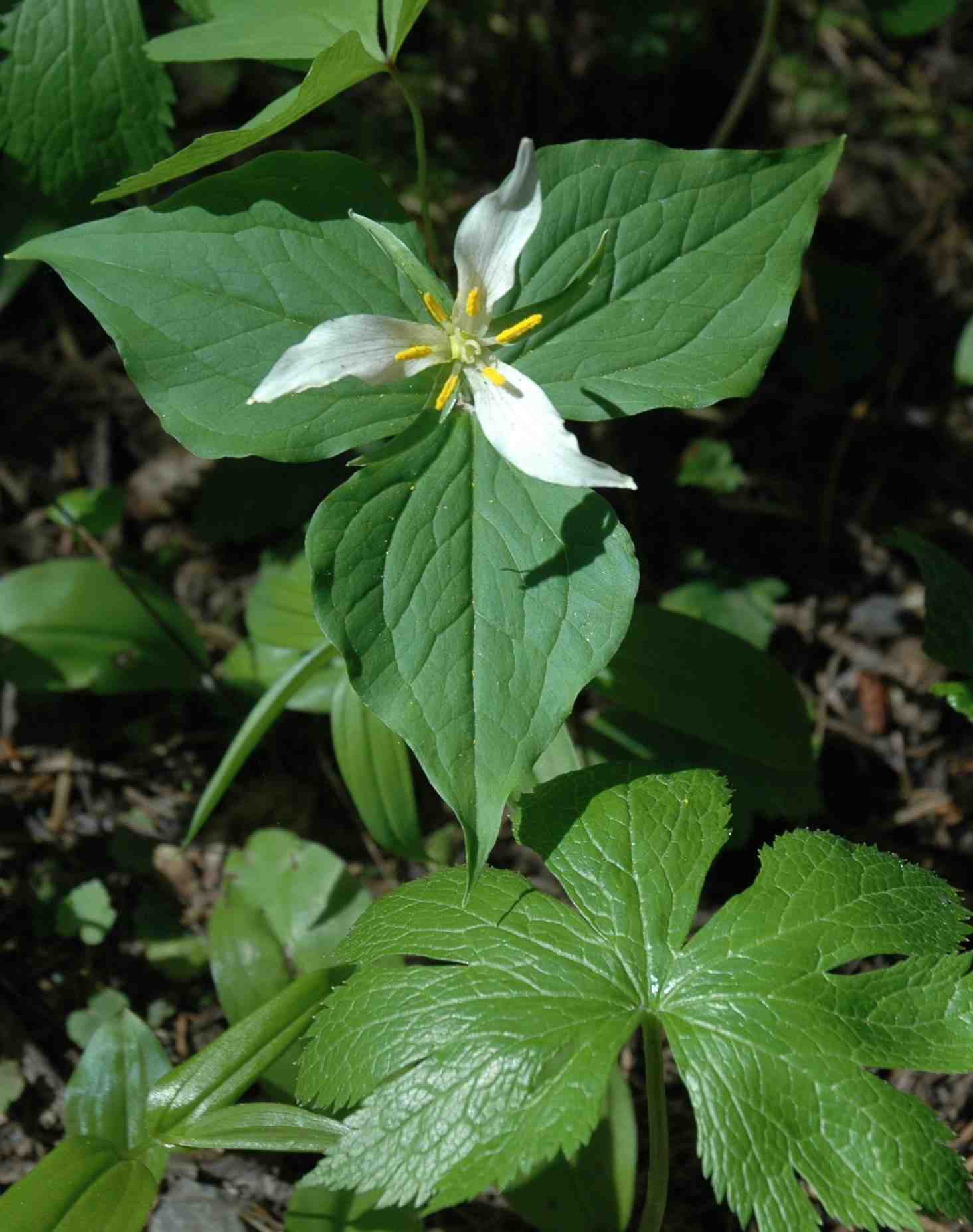 While these have many whorls of leaves, trilliums have just one whorl of three leaves, but then the show off with whirls of three sepals and petals.