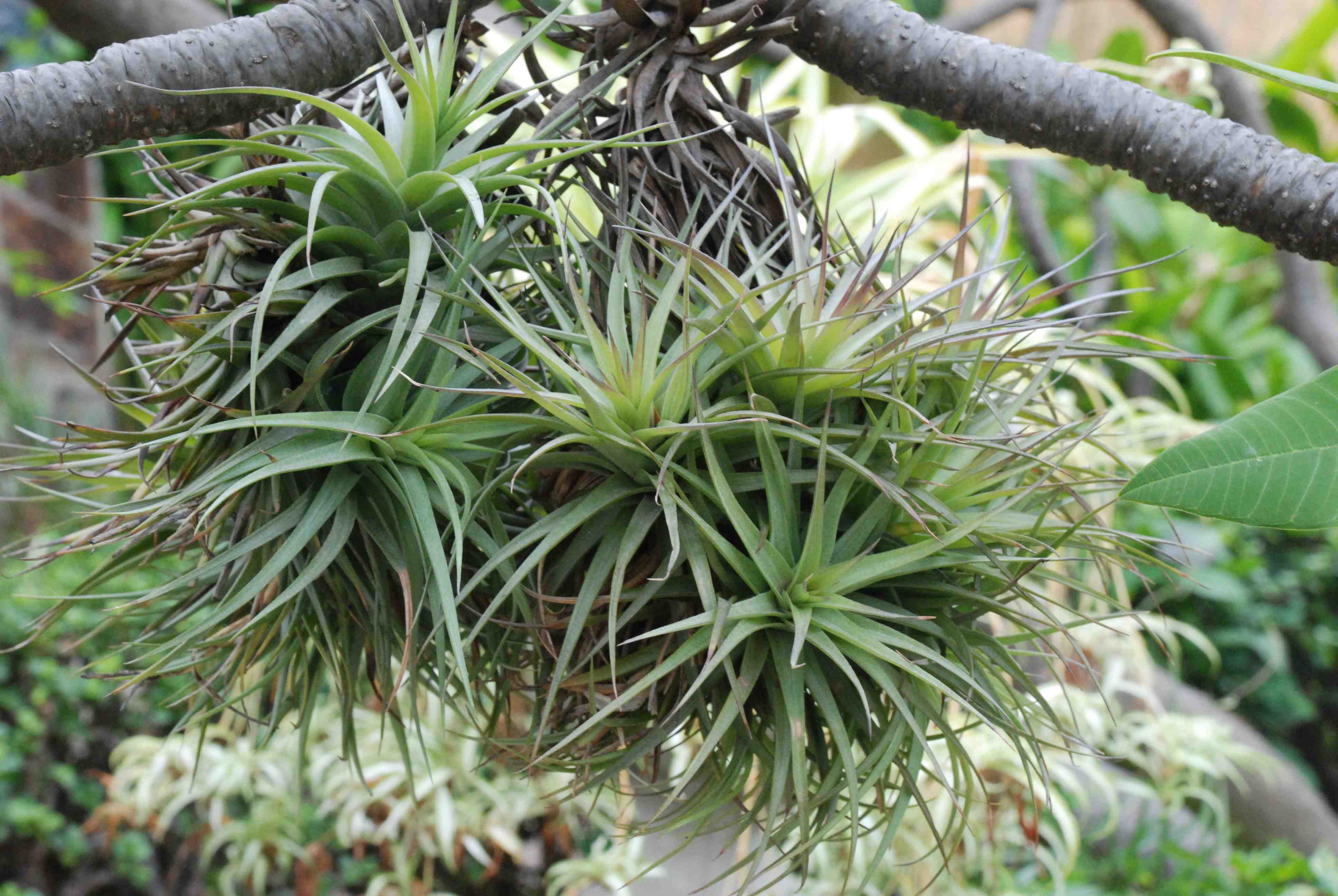 Some of the most remarkable xerophytes of all are the tillandsias. Most bromeliads ( the family to which they belong) grow in shade and with plenty of moisture but these absorb moisture from the air and have scaly leaves that are able to survive extreme drought – and many actually grow on cacti.