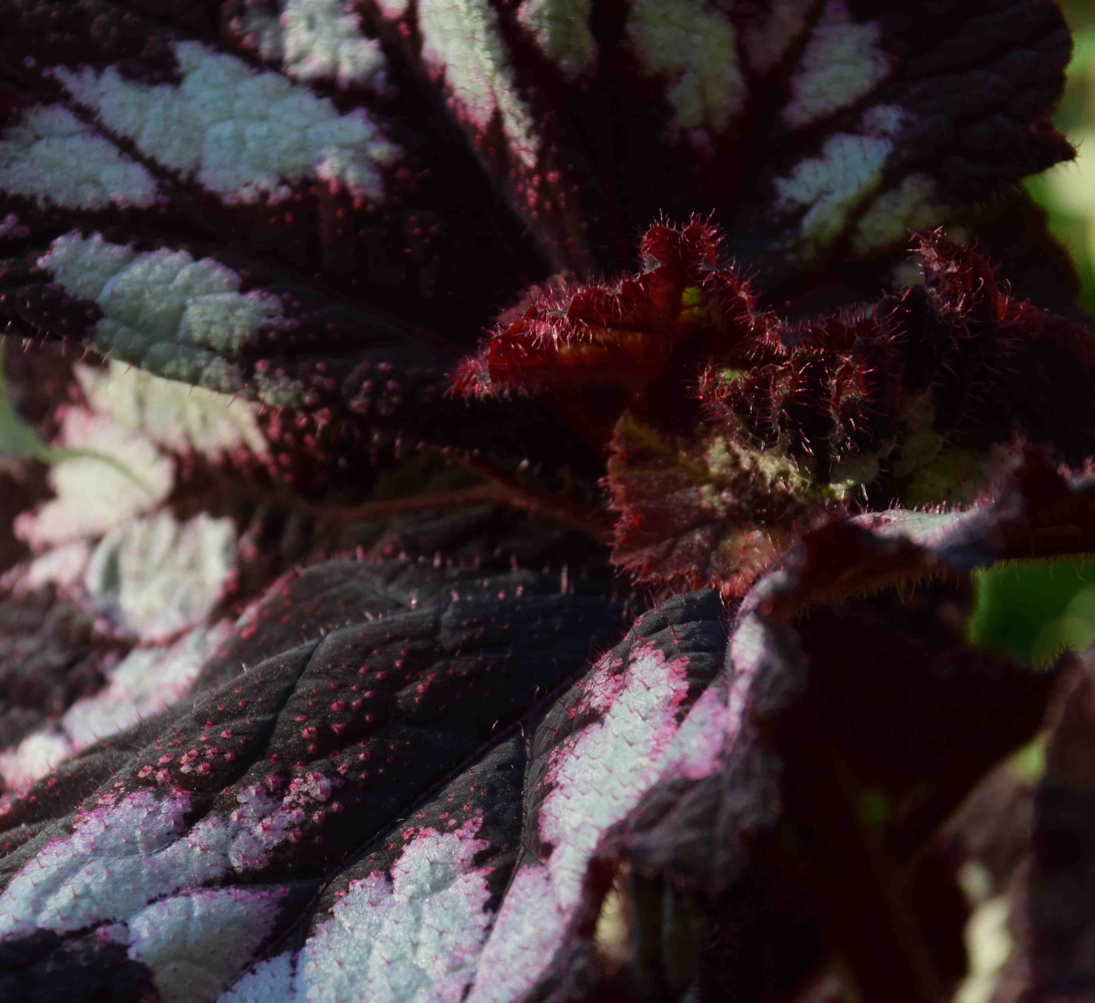 Unlike the previous two begonias, this is not a species but a hybrid, created by Leslie Woodriff and introduced in 1979. It is a Rex begonia, meaning that it is bred from the rhizomatous B. rex though the ancestry of the hybrids involves other species. Rex begonias have the most spectacular foliage of all, with silver and red and purple shades commonly dominant in the leaf. They can be spectacular but they like warmth, gentle light and high humidity. The leaves can be massive and because they are rather brittle, growing a really good plant is an achievement. If you remember that they like to be warm and comfy and never wet and cold you are on the right track! It is best to let the plants almost dry out before watering again but excessive drought will bring on powdery mildew and that spoils the leaves and is a bugger to get rid of since none of these plants likes to have wet leaves so spraying is tricky.
