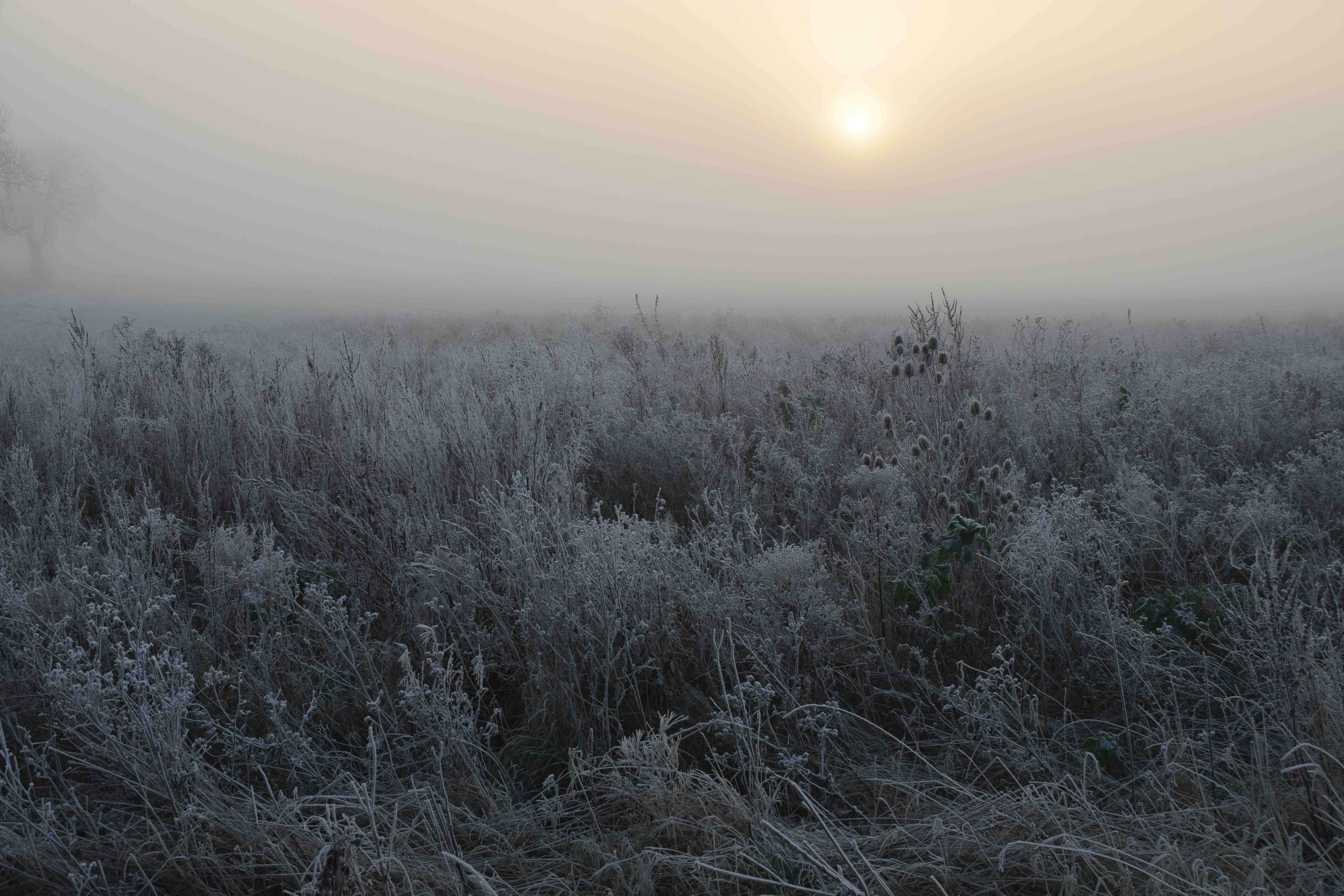 Happy New Year – and let’s hope it will be better than 2016! A bit of a cheat today as these photos were taken a few days ago (the first set on Thursday and the second set the day before – both on frosty days but one clear and one foggy). All the photos were taken in the village here – Thorney, Cambridgeshire, early in the morning.