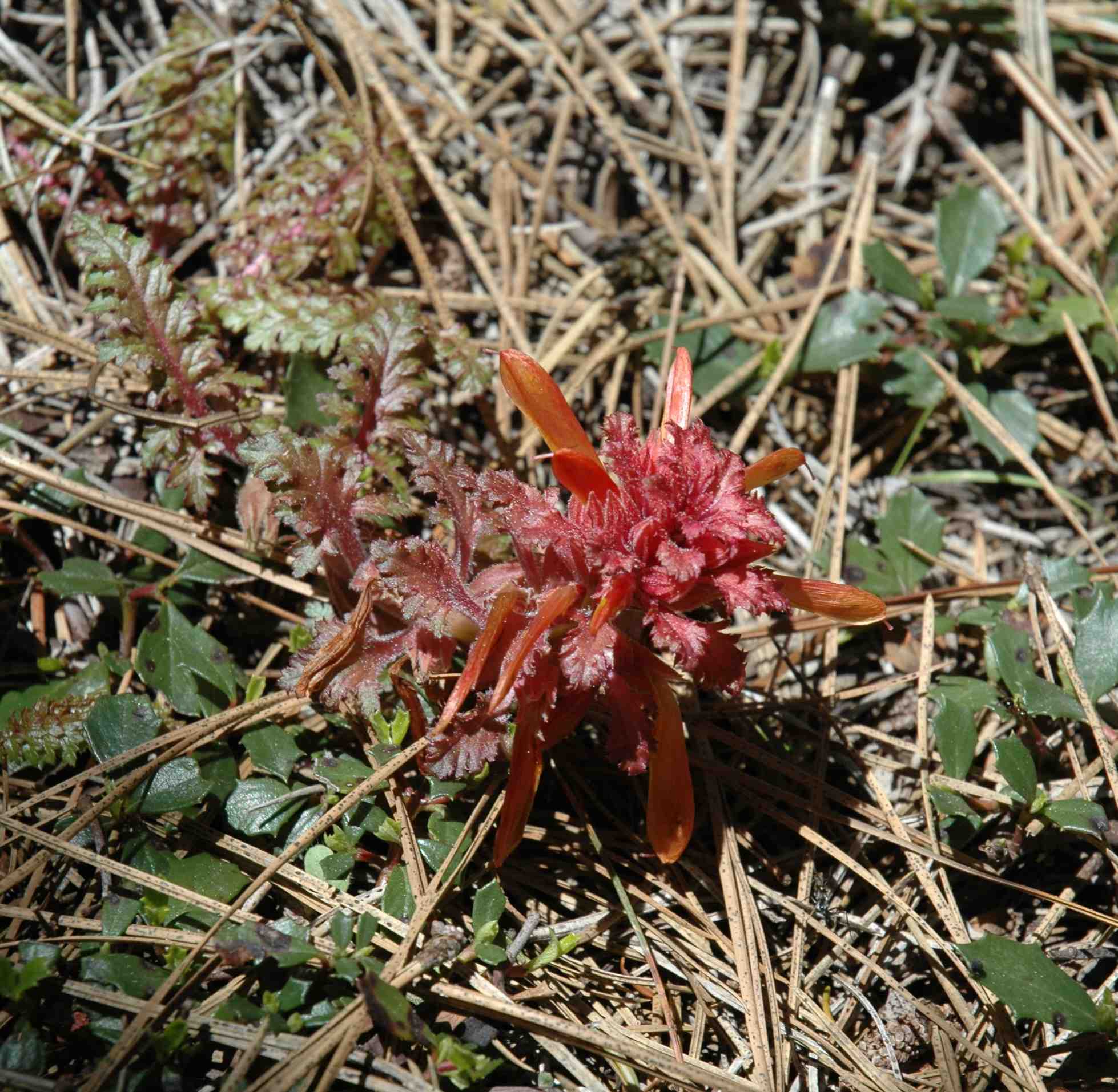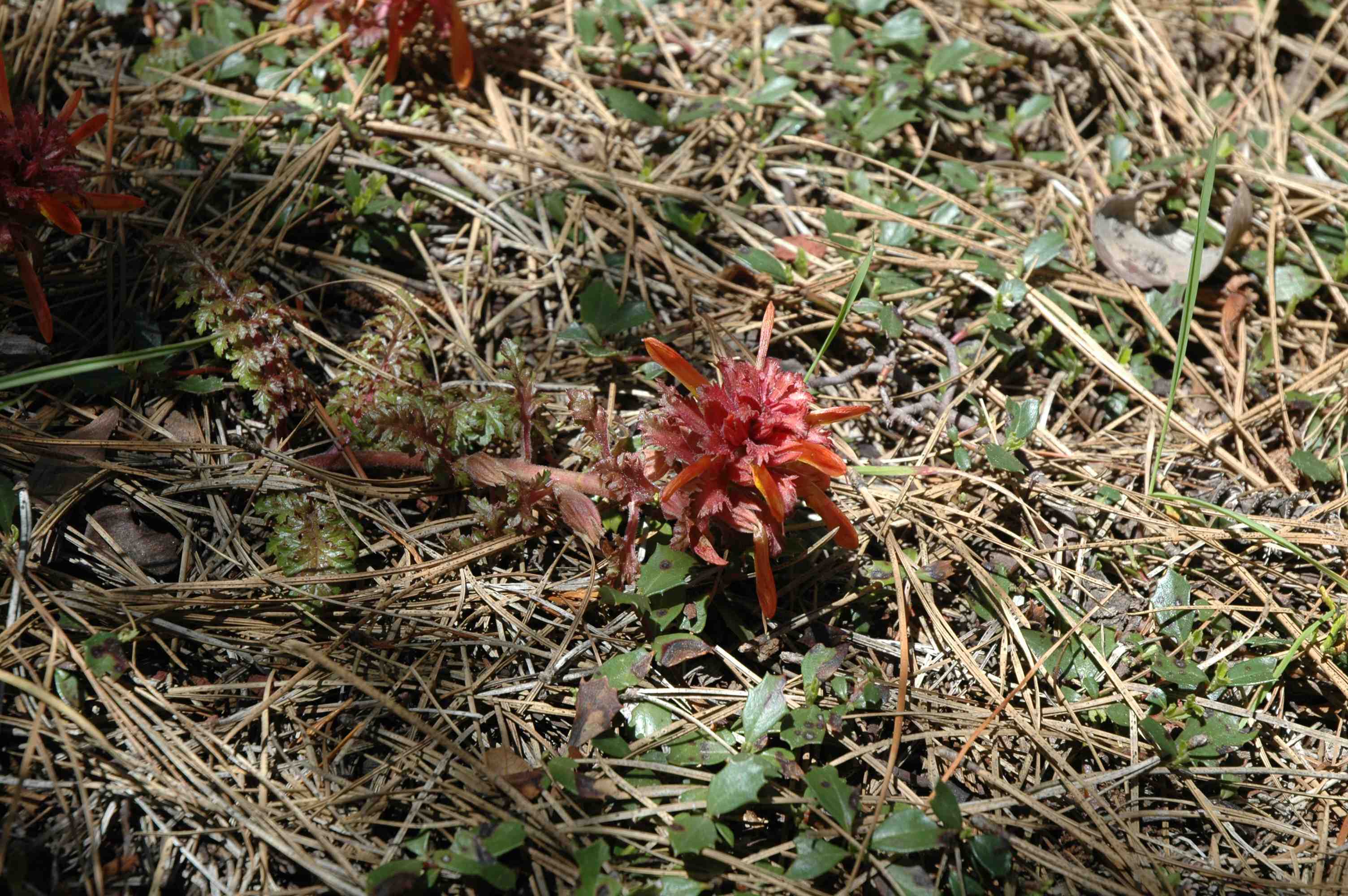 But back to the Indian warrior, this was found in northern California on a past visit, on a trip between Redding and Shasta, and it is also native to Oregon, usually growing in sun and prasitising the roots of shrubs in the ericaceae family. It is not a total parasite because it has green leaves that can manufacture nutrients, but it gets a boost from its host. The long leaves look a little like a very toothed dandelion leaf and the stems of deep red flowers have showy bracts, making this a very pretty plant.