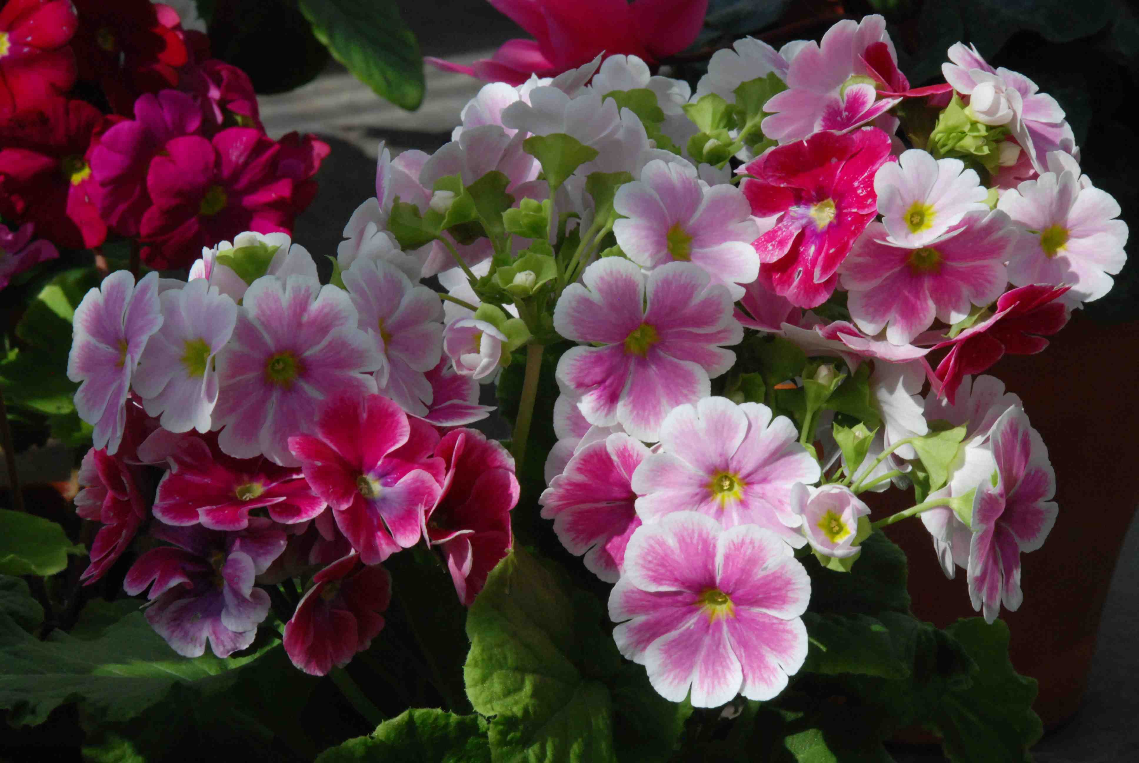 Not all primulas are hardy. My favourites include P. verticillata and its progeny P. x kewensis (both of which I have seeds waiting to sprout as I write) with farina covered leaves and joyous, yellow, intensely fragrant flowers in spring. They need just a little protection from cold and winter wet and are longlived. Much easier to find is the colourful and long-flowering Primula obconica. This Chinese species has large leaves and clusters of flowers on stems held above the foliage and the flowers are sweetly scented. The big problem with this plant is that the leaves can cause dermatitis in some people but new varieties have eliminated this problem. Kept cool and on a bright windowsill there is no reason why this should not look lovely for at least four months, longer if kept watered and fed.