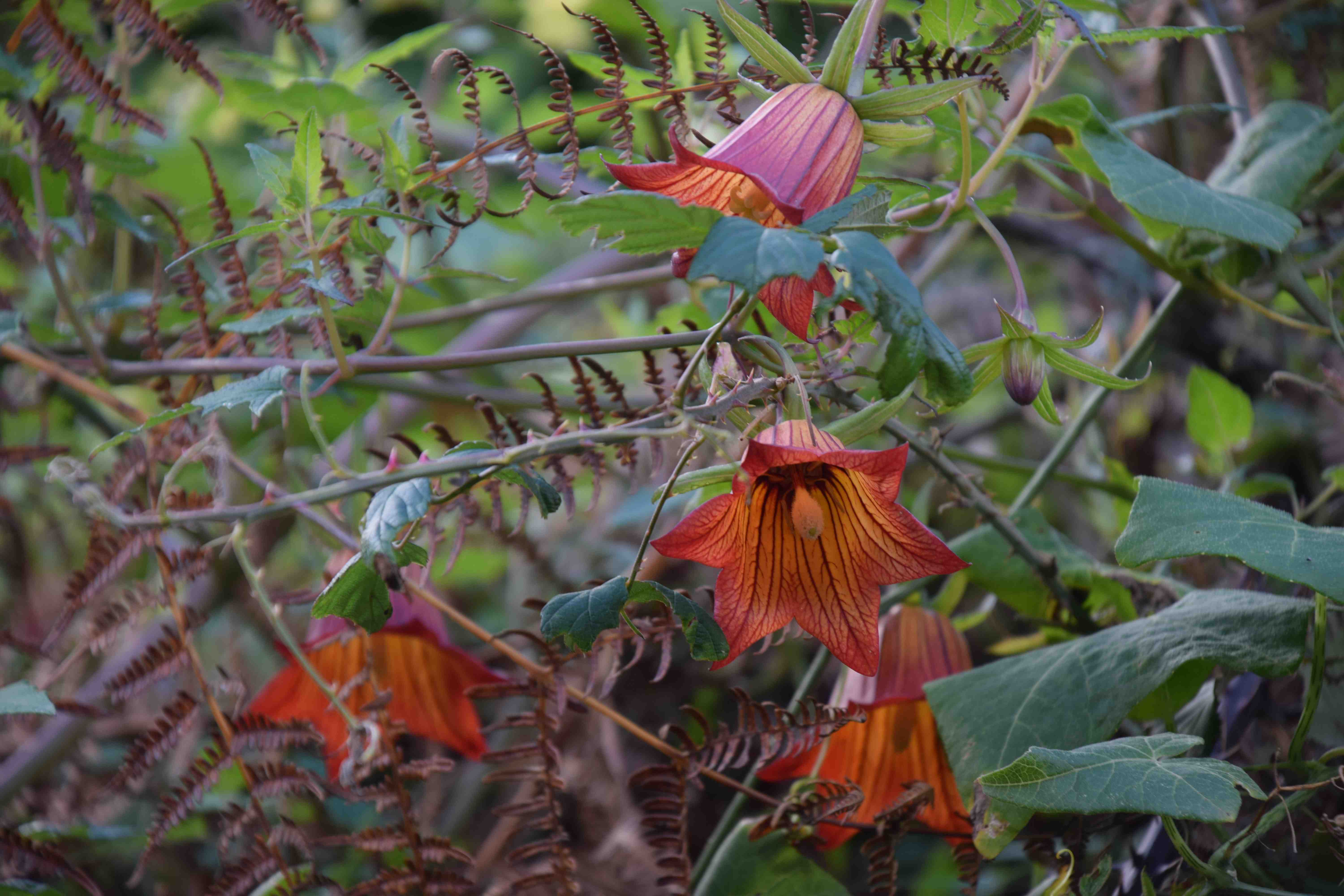 I was delighted to find one of my favourite plants, Canarina canariensis, growing in the scrub on north-facing slopes, the angular, fleshy stems terminating in huge, orange bells. I have never seen this in the south and it seems to need more moisture than the arid areas allow even though, when grown under glass in the UK, it needs very careful watering. Unusually, for a campanula (relative) it has six petals and fleshy berries rather than dry seed pods, which are traditionally eaten as a food. the flowers resemble Fritillaria imperialis in colour, shape and size. The colour of the flowers and copious nectar are suggestive that the flowers are pollinated by sunbirds, along with some other Canarian species, even though these birds are not present on the islands – perhaps the plants are relics of plants from Africa.