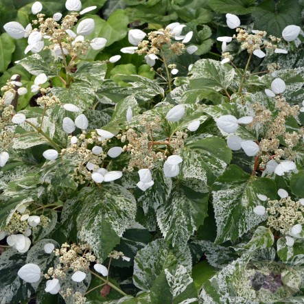 Rather different, and launched at Chelsea, is Schizophragma ‘Burst of Light’. This is a variegated form of what is basically a rather posh version of the climbing hydrangea. I know that it is only days since I criticised this kind of spattered variegation but I actually quite like this. It is perfect for a shady wall or fence and would brighten up a dark spot perfectly.