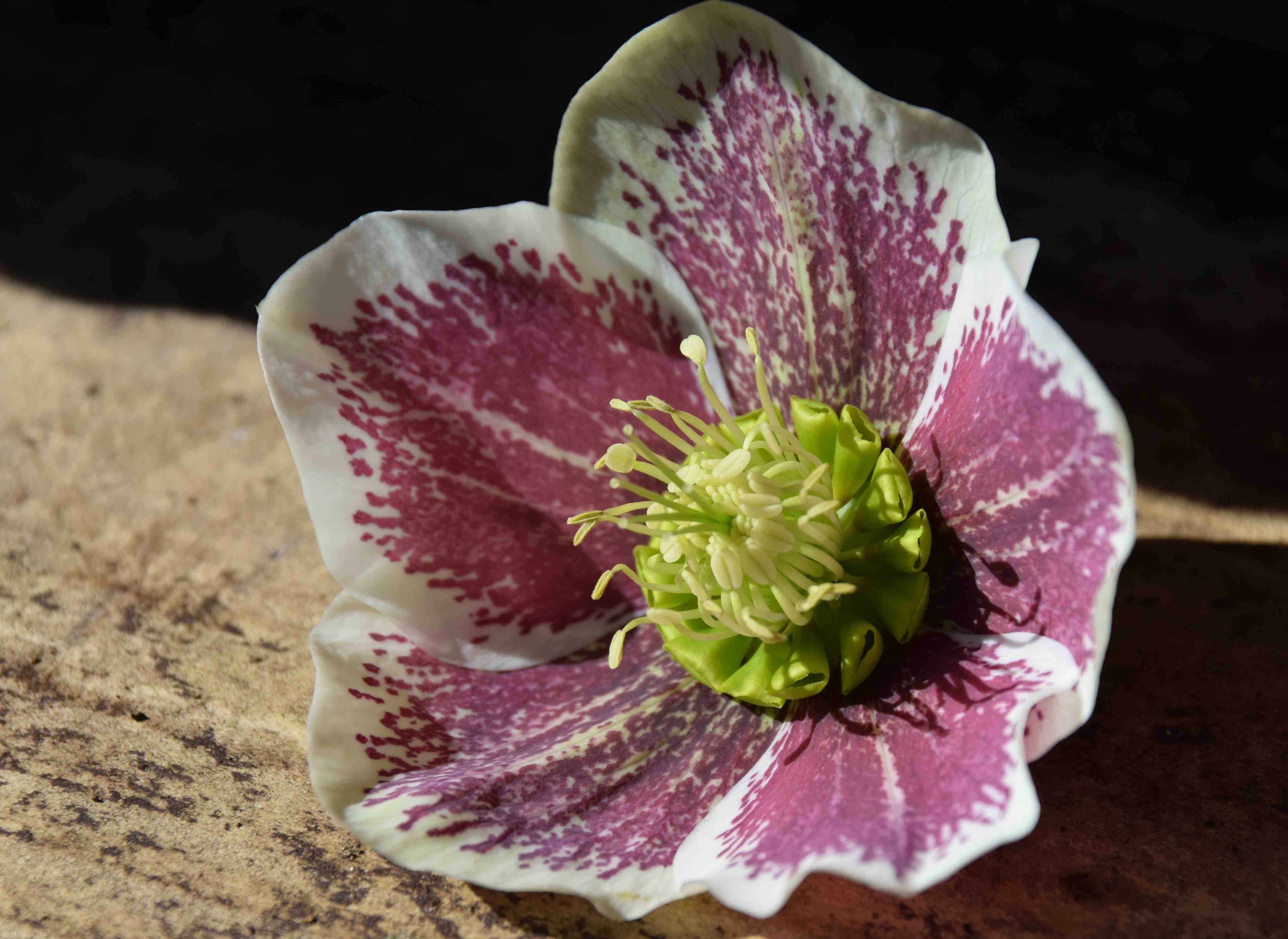 I was pottering around the garden yesterday and the sun was shining on the hellebores, inviting me to lift their heads and gaze into their faces. I just had to get the camera out. My selection is not comprehensive but here are a few of them that have been in the garden for years. If you do not have any in your garden, rush out and get some this weekend. The pleasure they give is out of proportion to the care they need – few plants are easier to grow in part shade.