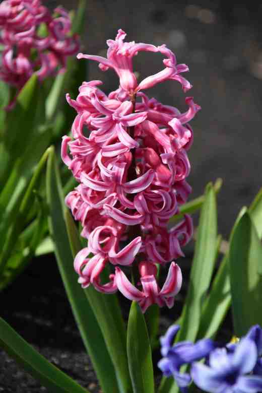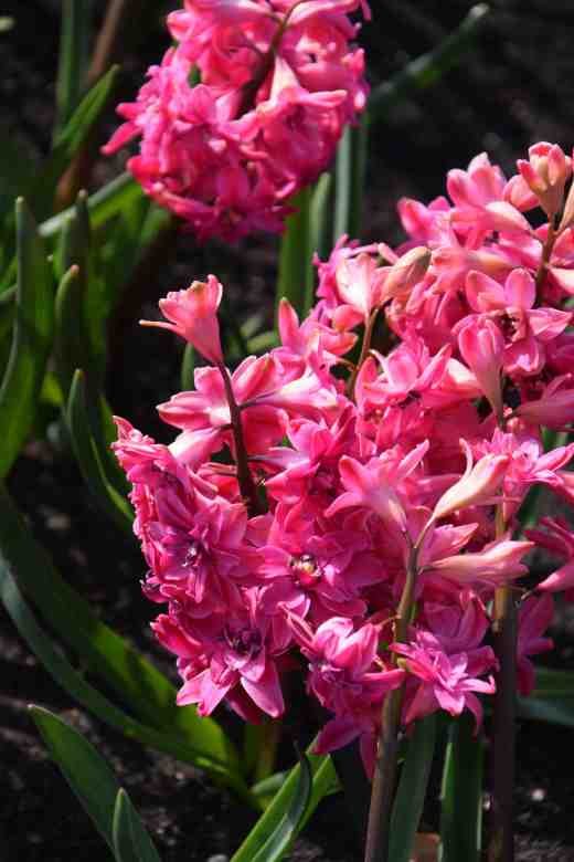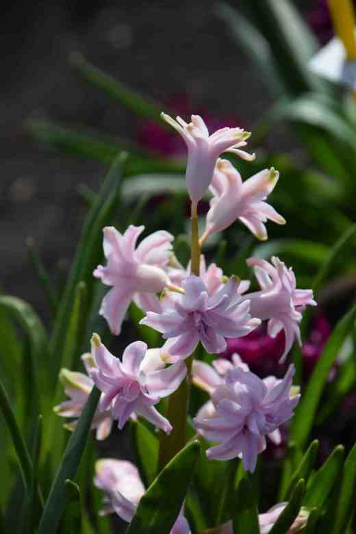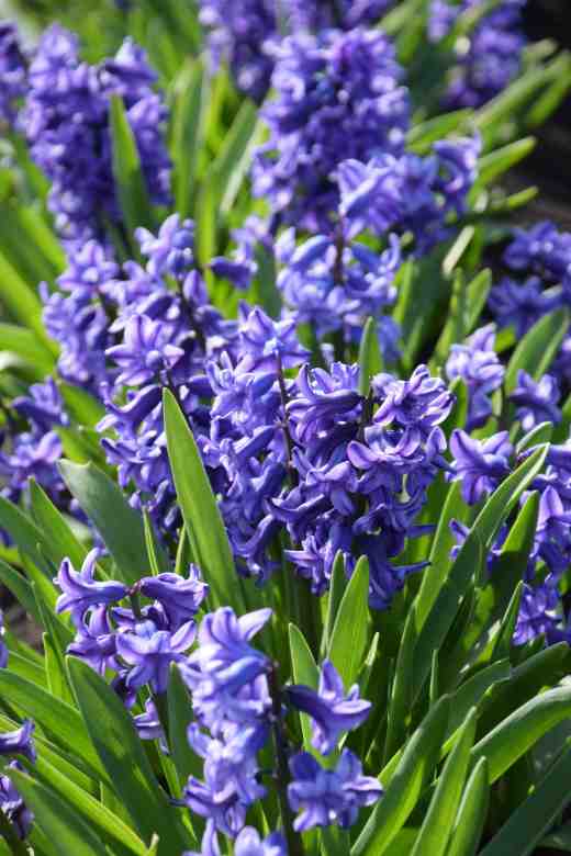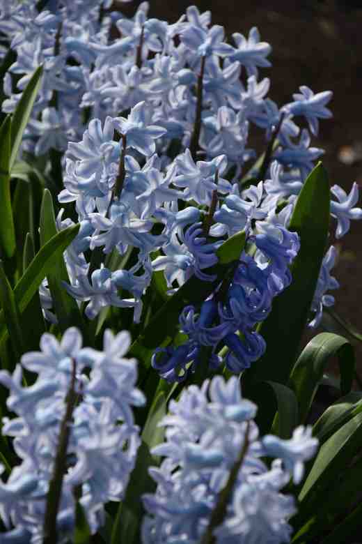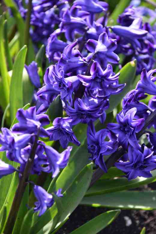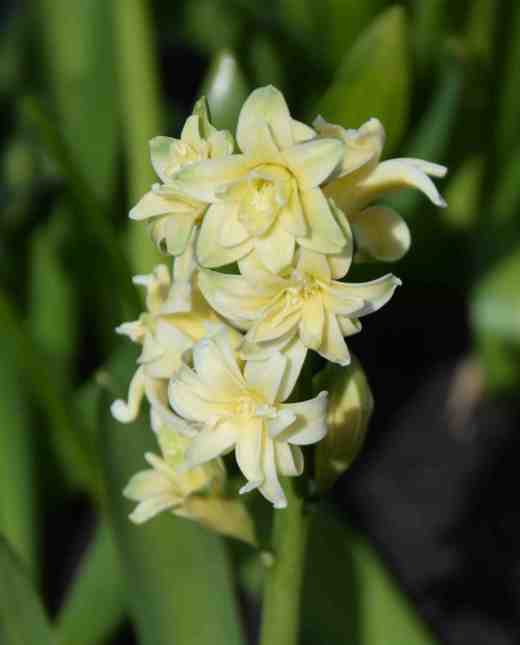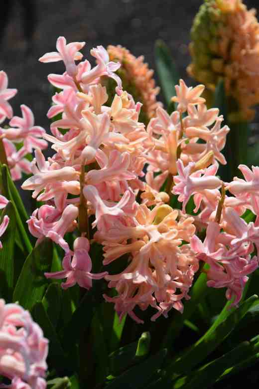 Please note that, although the stoutness of hyacinth stems and the number of flowers per stem does vary with cultivar, the plants photographed are growing stocks and some bulbs are still young and do not necessarily demonstrate the full potential of a mature bulb. So don’t dismiss a cultivar because it seems to have few flowers per stem.
