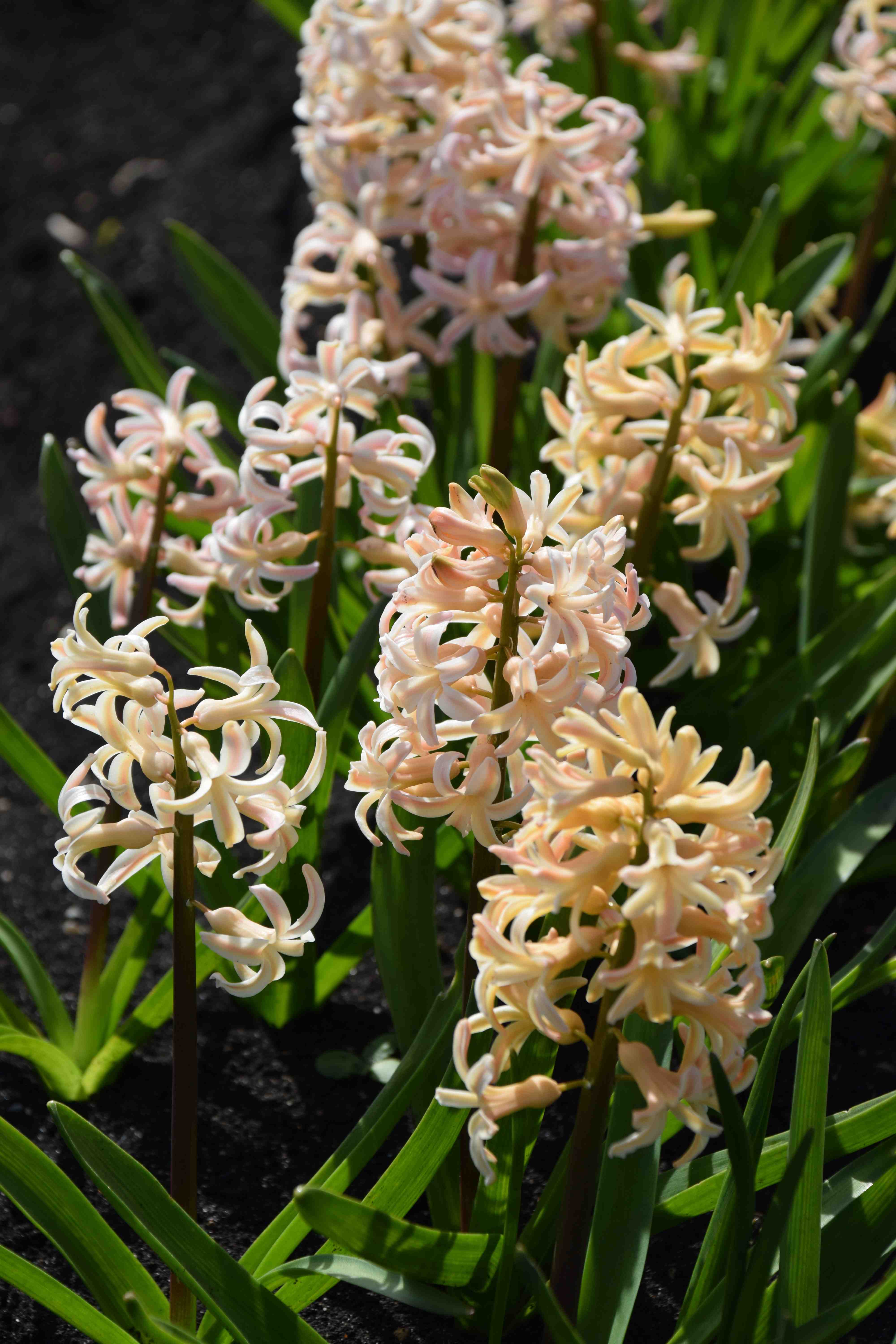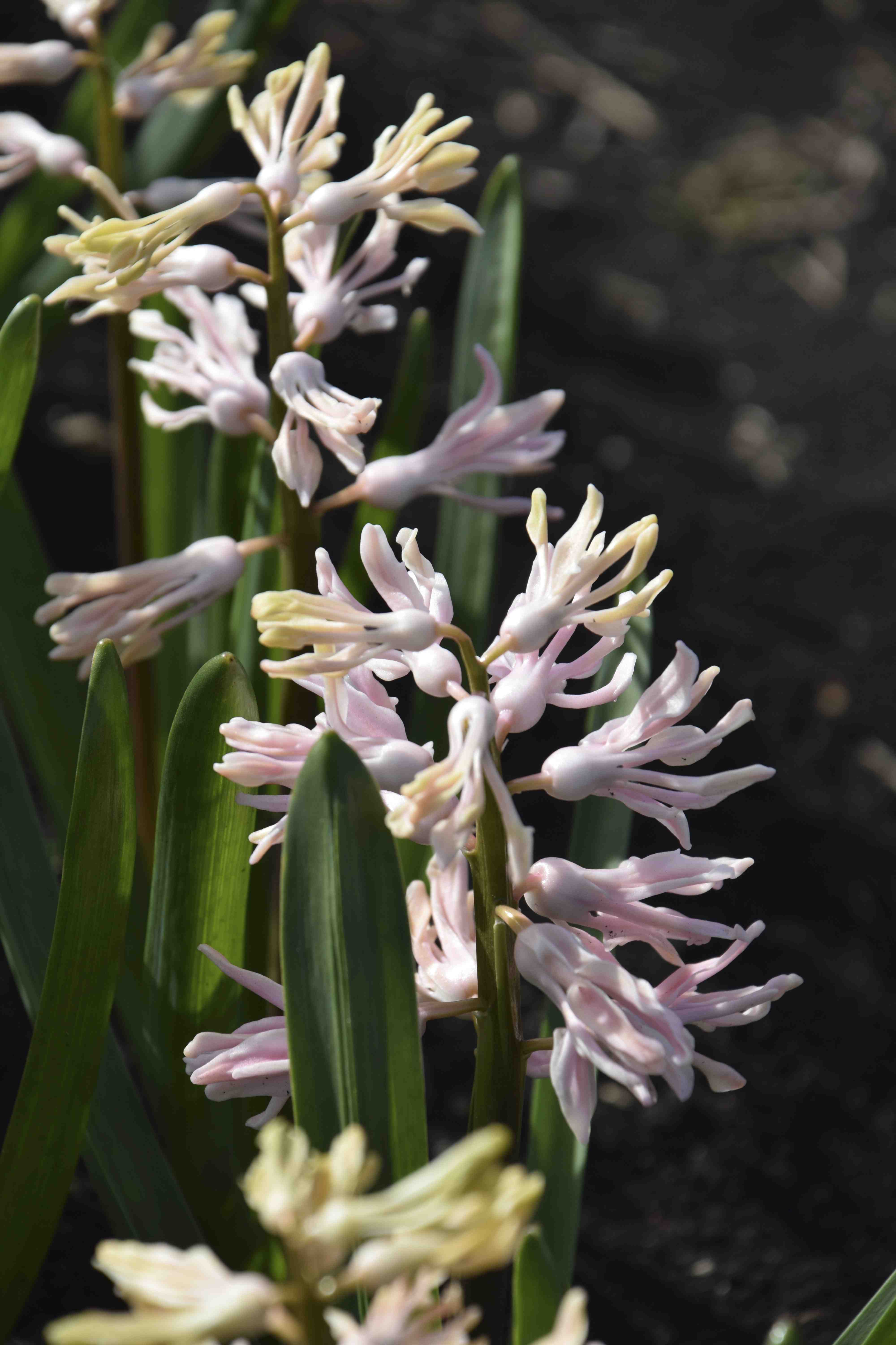 Please note that, although the stoutness of hyacinth stems and the number of flowers per stem does vary with cultivar, the plants photographed are growing stocks and some bulbs are still young and do not necessarily demonstrate the full potential of a mature bulb. So don’t dismiss a cultivar because it seems to have few flowers per stem.