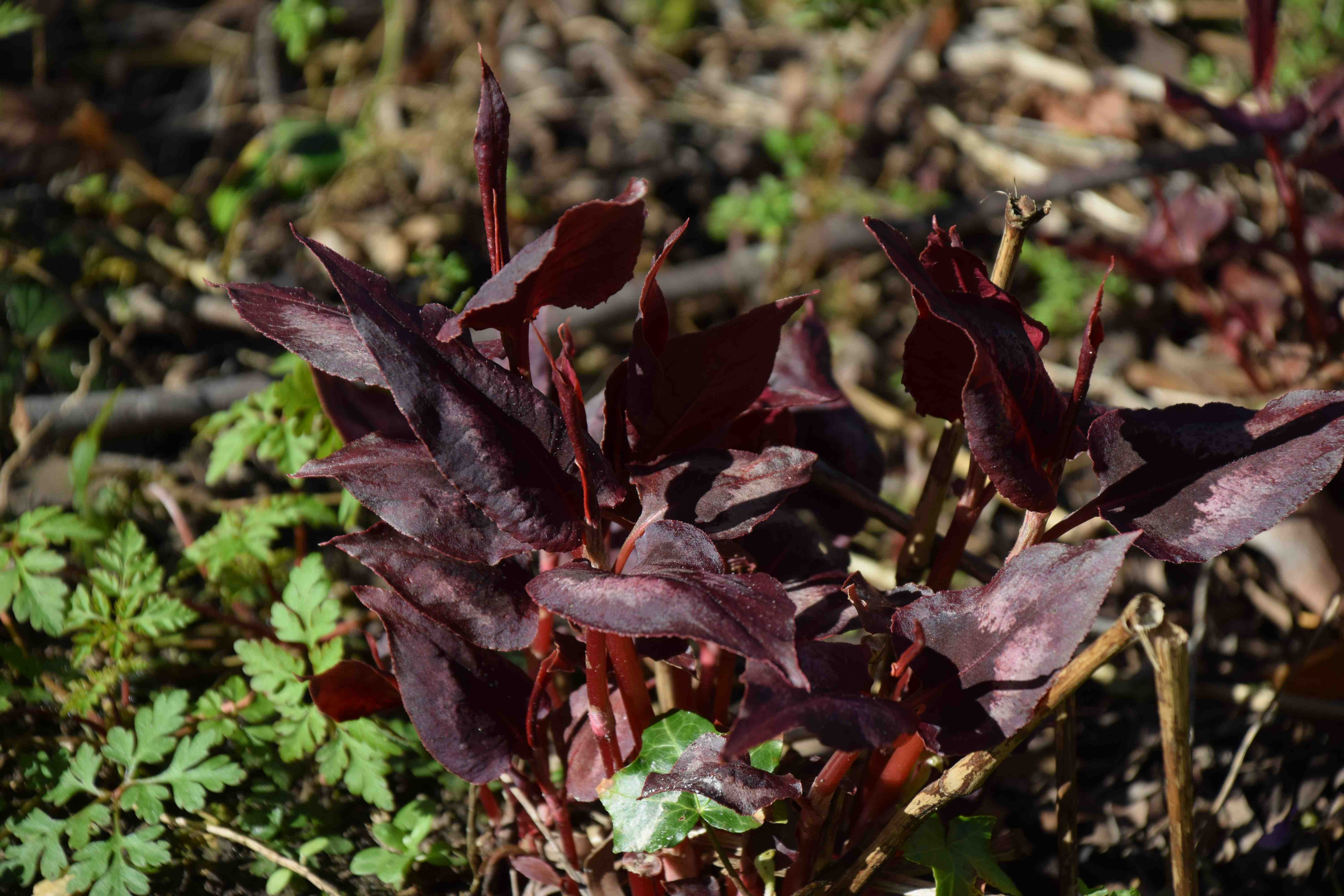 And below is persicaria ‘Red Dragon’ just starting to appear. This is another cracking plant that is tough and colourful and this poor specimen has tolerated years of neglect. It can reach 1m high and across by late summer but it always looks good.