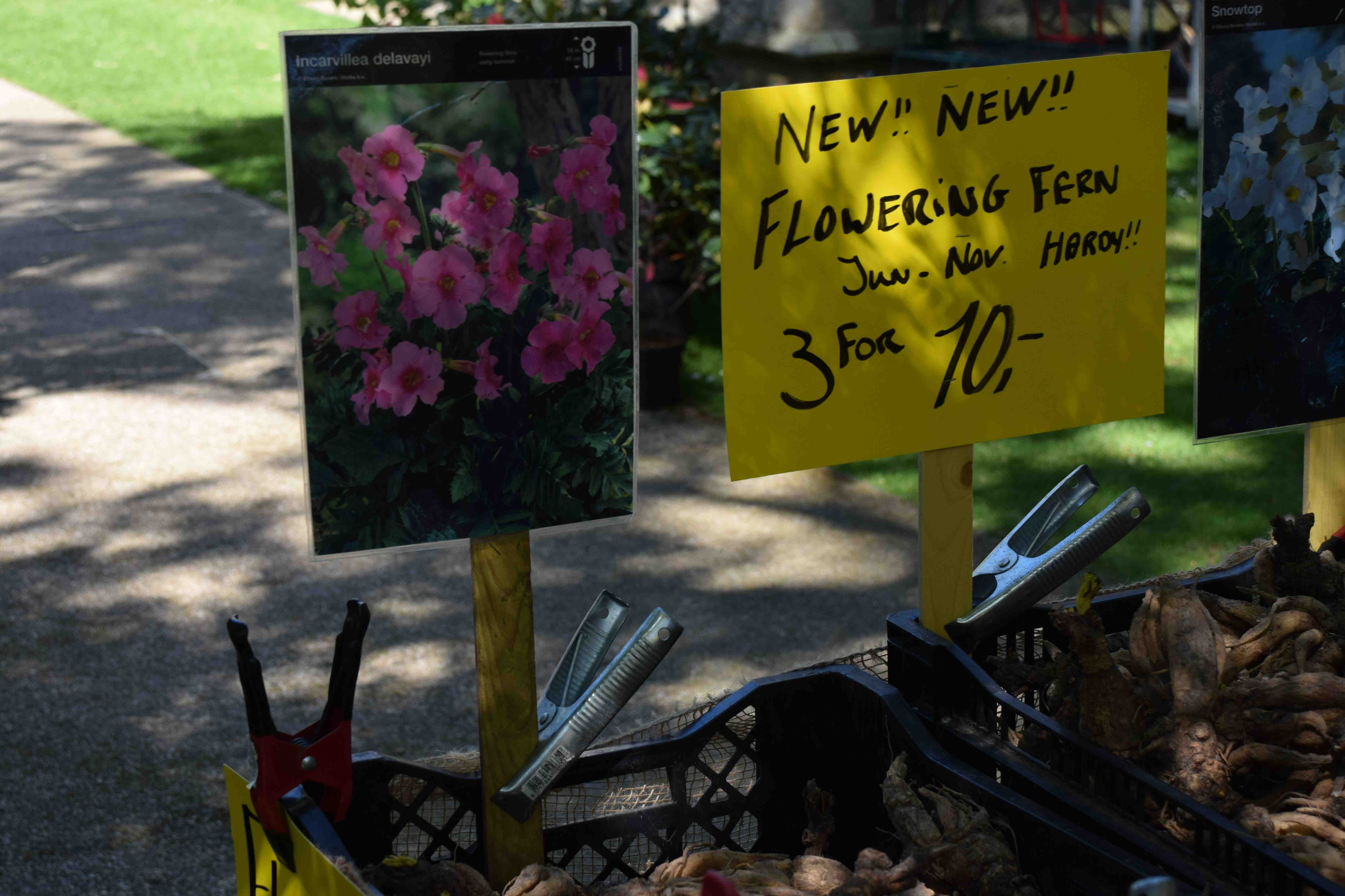 Now, ferns don’t flower – period! They are primitive plants that evolved before flowering plants and they reproduce by spores. This is Incarvillea delavayi, a perfectly nice herbaceous plant that is easy to grow and has divided leaves and rather spectacular flowers. It is commonly available in most garden centres as dried, tuberous roots or as growing plants and, as an example, Harts Nursery (www.hartsnursery.co.uk) sell it for £5 for 3. It usually flowers in May and June. It is NOT a hardy fern, is definitely NOT new and it will NOT flower from June to November. It is not even good value at 3 for £10. It IS hardy however, so some marks for getting that right!