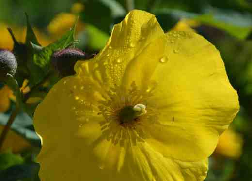 The blooms are a pure, lemon yellow – very attractive – and I noticed that they were very popular with honey bees which landed in the centre of the blooms and ‘ran’ around the stamens as though collecting pollen on their tummies.