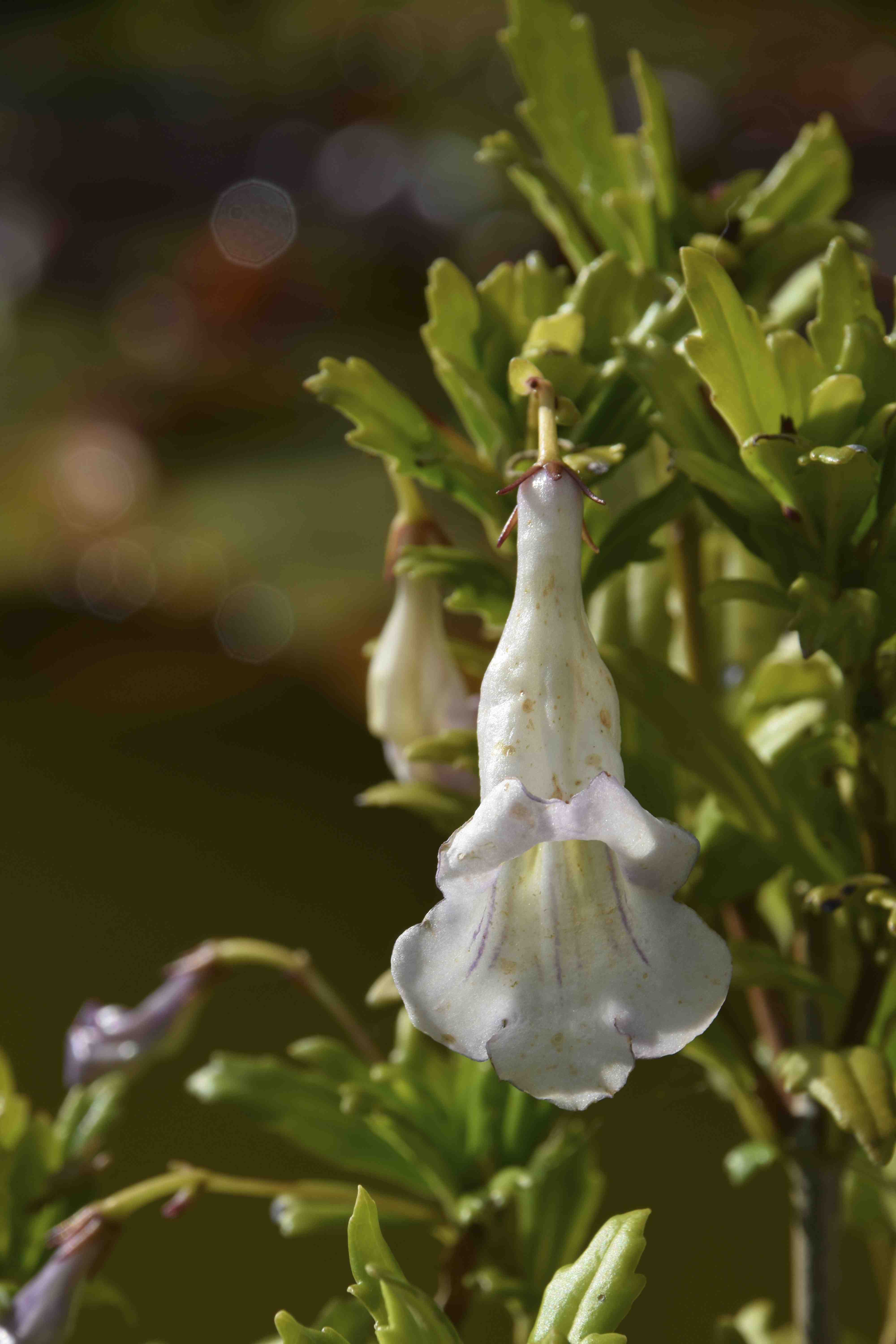 So it was exciting to find a plant in the local garden centre that looked decidedly like a gesneriad but was a hardy shrub. Lysionotus pauciflorus is a small, rather rambling shrub, about 60cm high, from China where it grows in south east provinces and also in Taiwan, north Vietnam and Japan at elevations of 300-2200m. It has rather leathery deeply indented leaves and large, pale lilac flowers marked with darker lines through the throat. They appear unscented.
