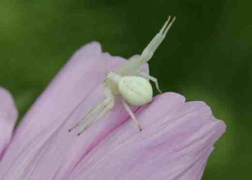 Crab spiders do not spin a web but wait on flowers to grab their prey, usually with their front legs arched forward. When prey approaches the spider lunges forward, grabs the prey and gives it a paralysing bite.