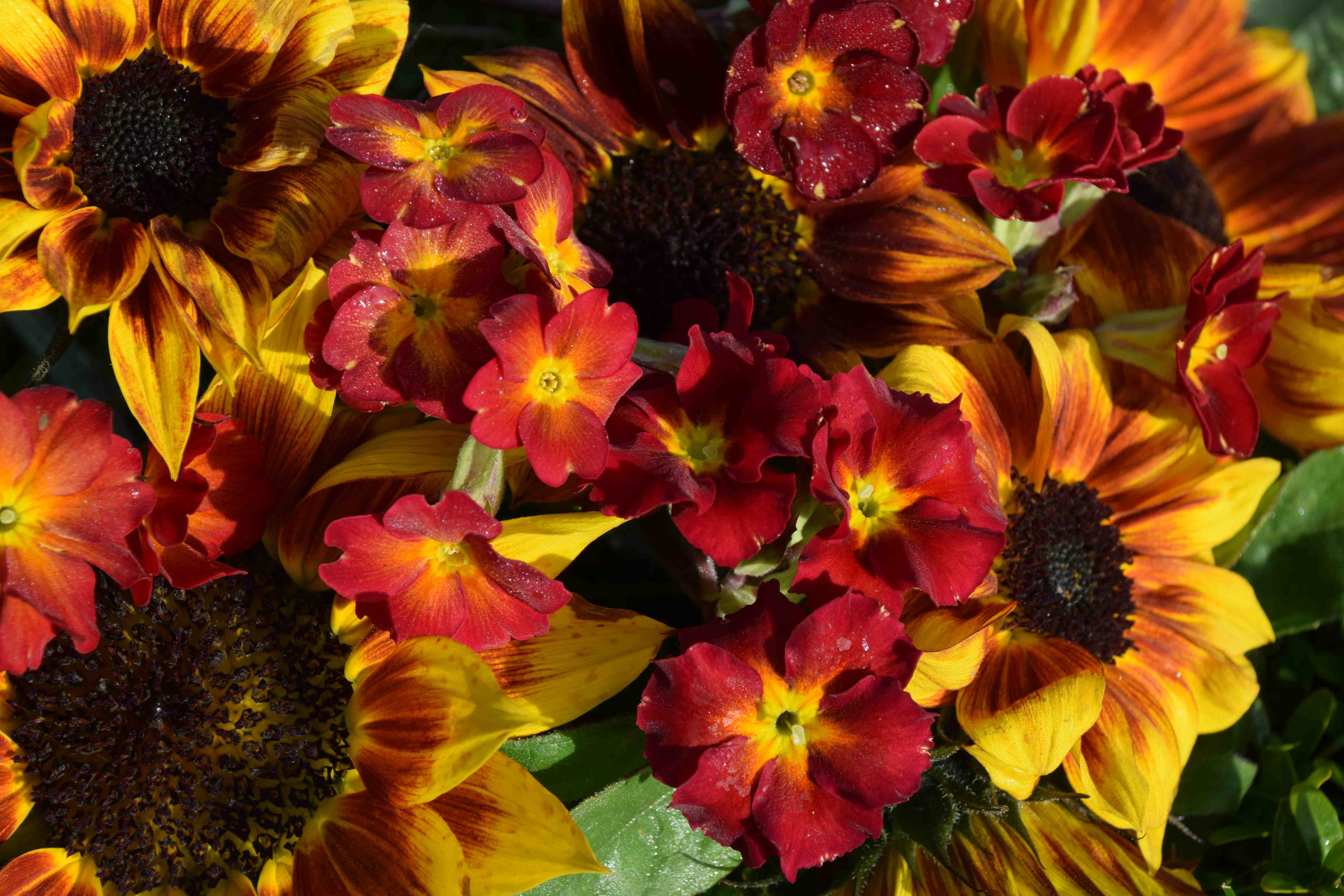 All three combinations are stunning – but the polyanthus/sunflower combo is great because it’s not one you could plan.