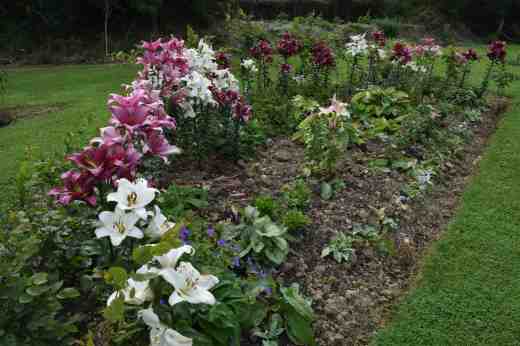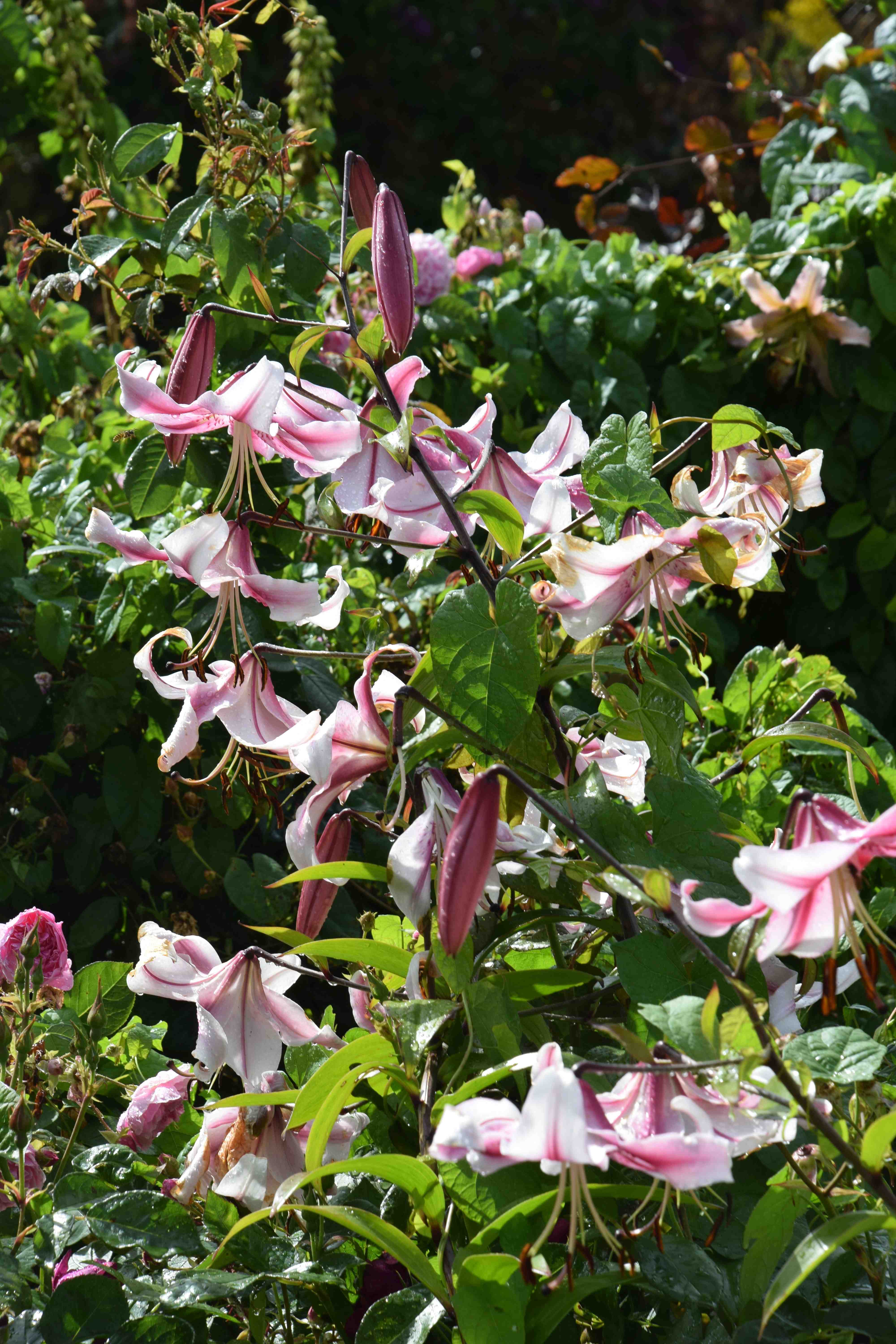 My plants were a random mix but are basically two shades of pink and white – not a representative mix at all, since OT lilies include yellow and oranges. But they are colourful, for a few weeks, and fill the garden with fragrance. In their second year they are about 1.2m high but I can expect them to be 2m high in a few years. In the past I have had them reach 2.4m.