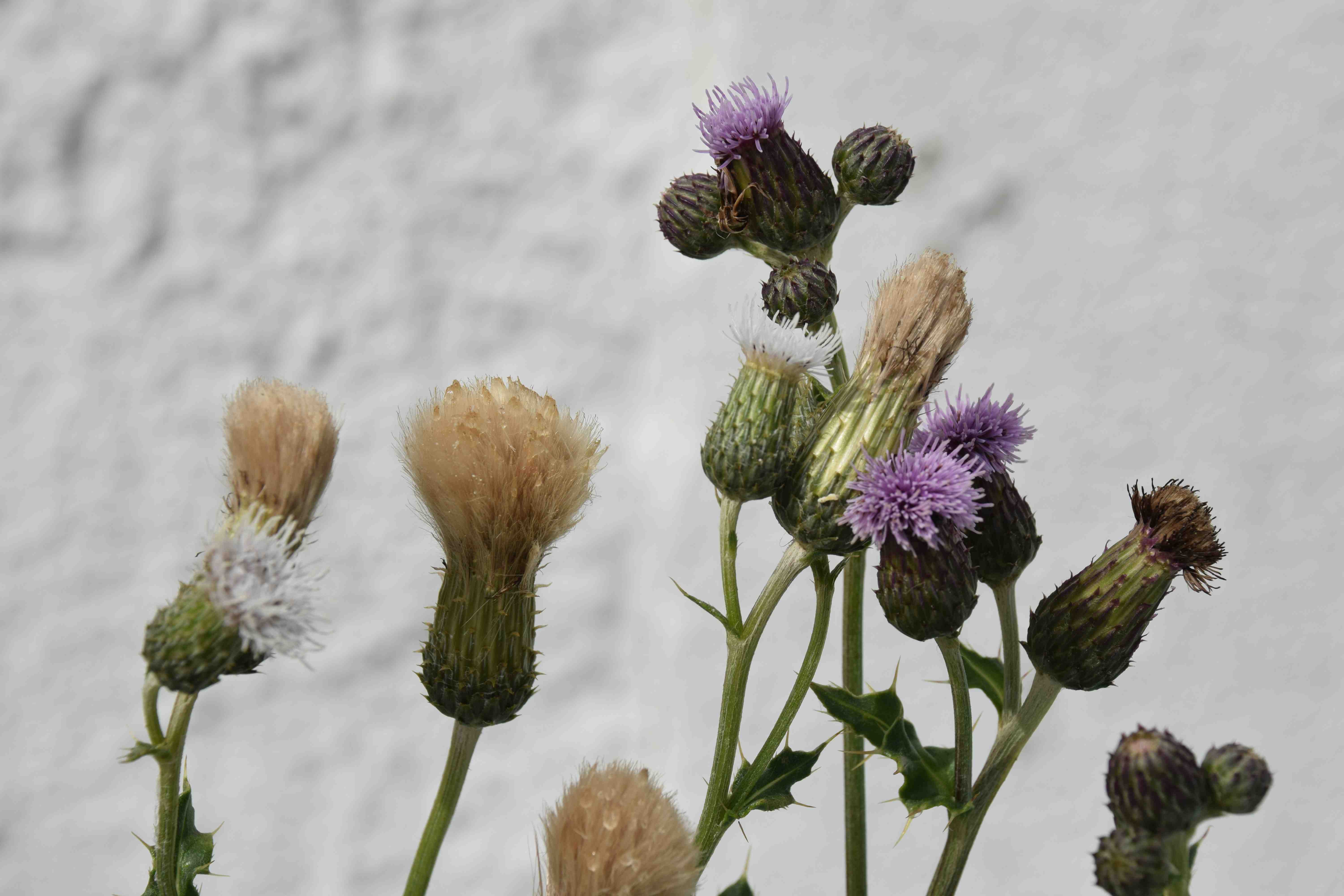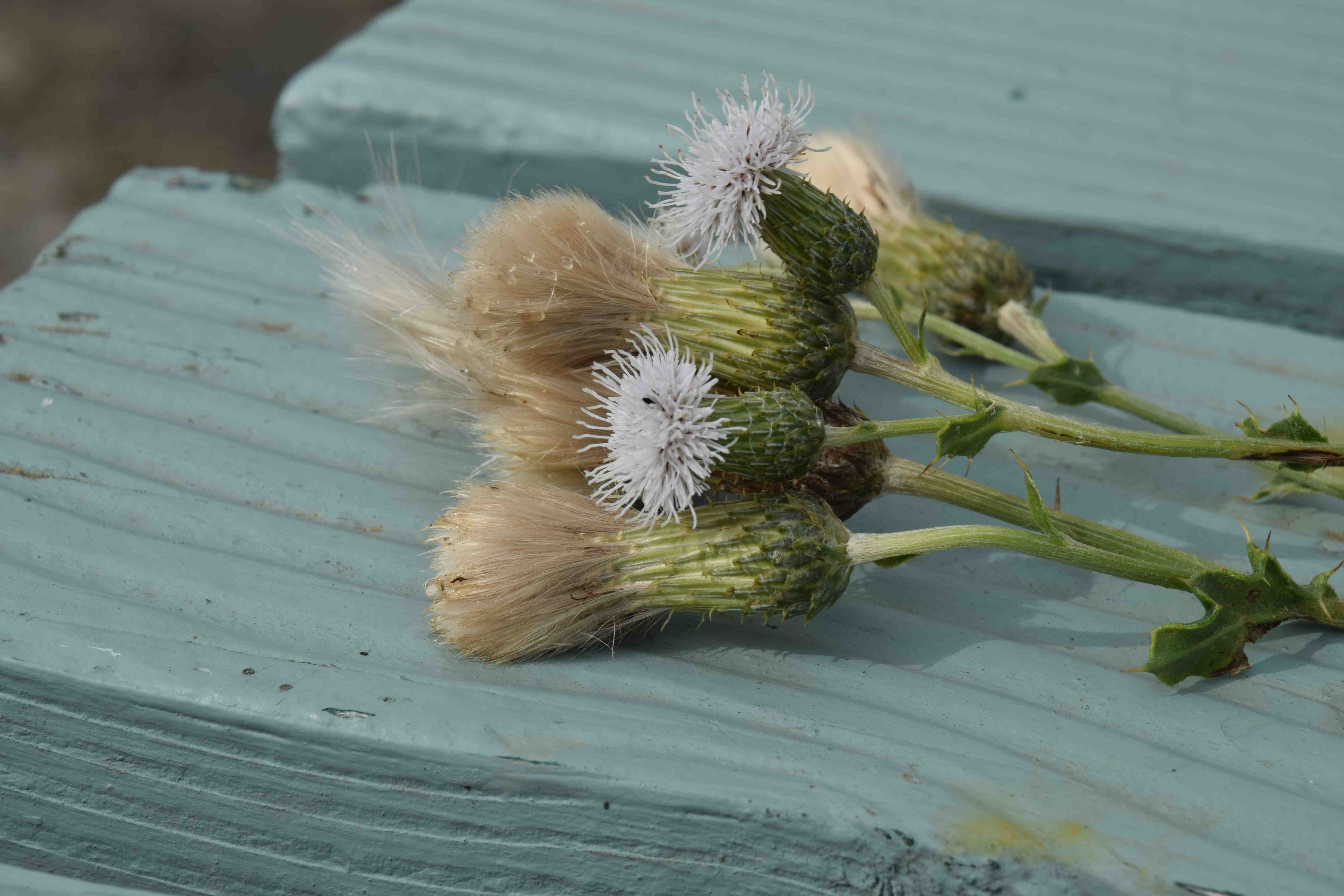 Anyway, back to the thistle; I have two reasons to mention it. Primarily it is because I found a large colony where all the flowers were white. I cannot remember ever seeing a creeping thistle with white flowers before. They are usually lilac. The photo above shows the two but it is not very clever to photograph a white flower against a white background so here it is again on a bench.