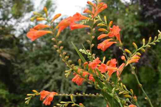 You will be relieved to know that I did not just buy weird plants while we were on our travels. I am very fond of crocosmias, something that may be odd here in Ireland where the common montbretia is naturalised everywhere. The popular ‘Lucifer’ is widespread and no worse for that, though I am sure that many clumps are imposters since it comes true (or almost so) from seed. I brought back just two, since I had to balance my purchases. Above is ‘Golden Dew’ which is a mid-sized plant with slightly bronzed leaves and golden yellow flowers. It screamed at me to take it home and I fell for its large, flat, bright flowers. To balance that I also bought ‘Culzean Pink’ (or Peach) which is more subtle, with its tubular flowers held more horizontally. They are a curious salmon pink, unusual in the genus. BTW, it is pronounced ‘kew-lane’.