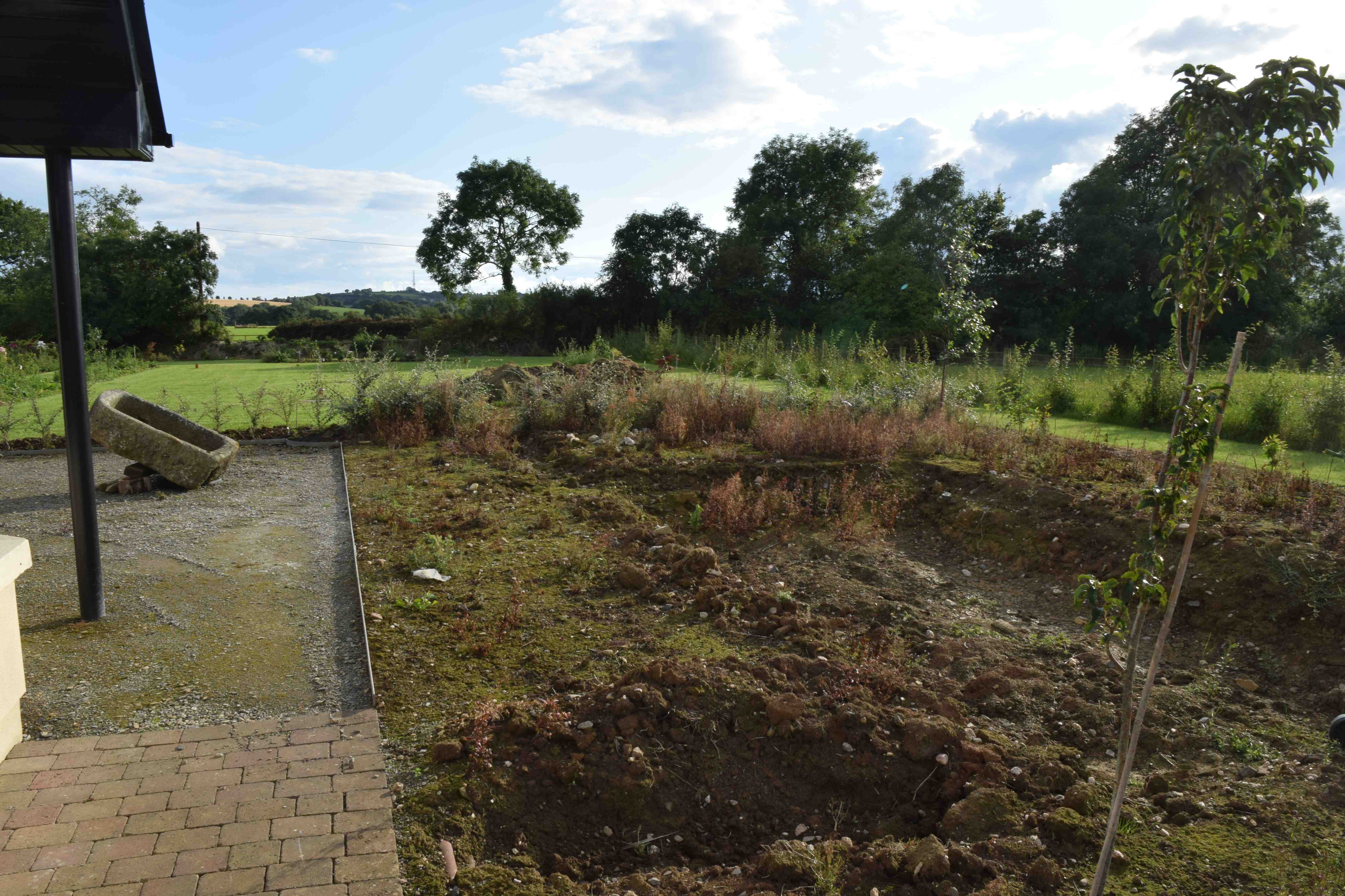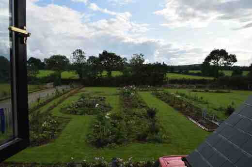 The front garden is south-facing with a gentle slope to the south too. From a bedroom window you can see the ‘lemon meringue’ garden which will be planted with yellow and white beyond which is the rose bed, a square formal bed for bedding and the genesis of irregular beds beyond. Right of that is a pair of formal beds backed by hornbeam – which has only been in six months so does not really show!