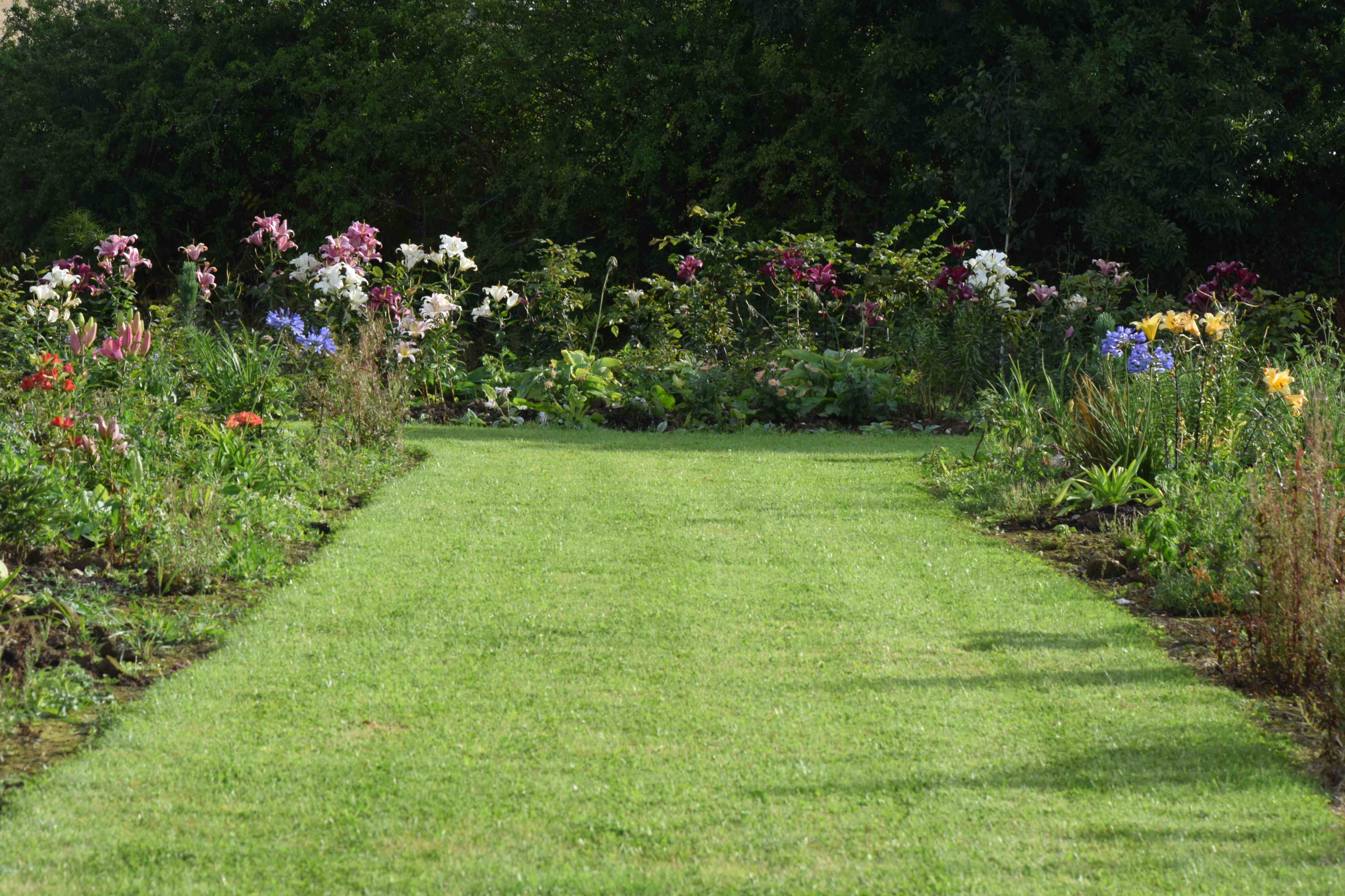 The two long borders end in a semi-circular bed. Not all the beds have been dug yet. I have been digging and planting patches, which is far from perfect but was necessary. I also still have to cut the edges of the beds.