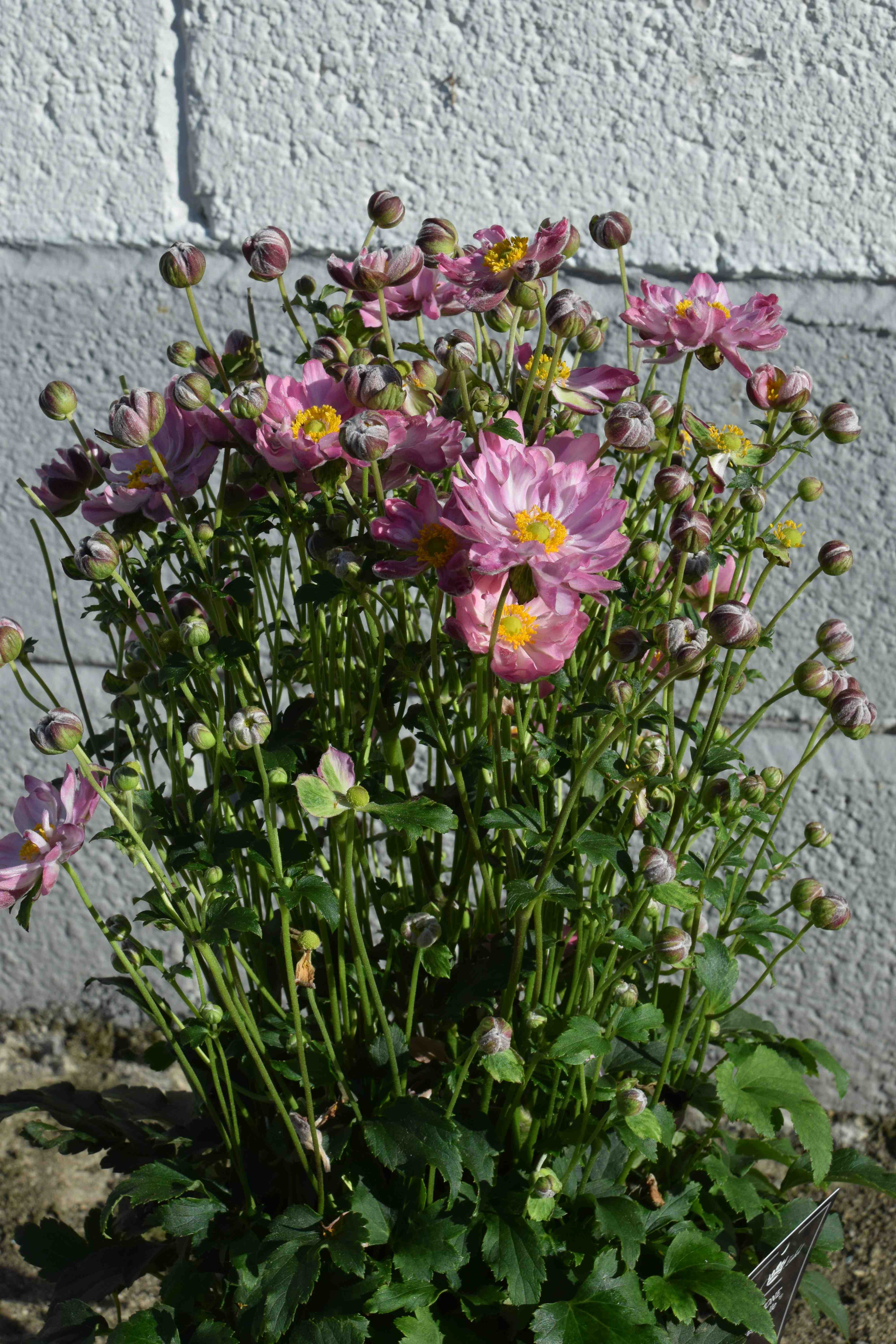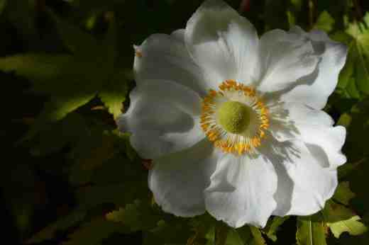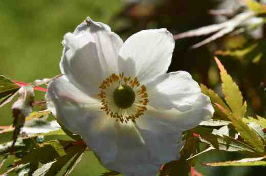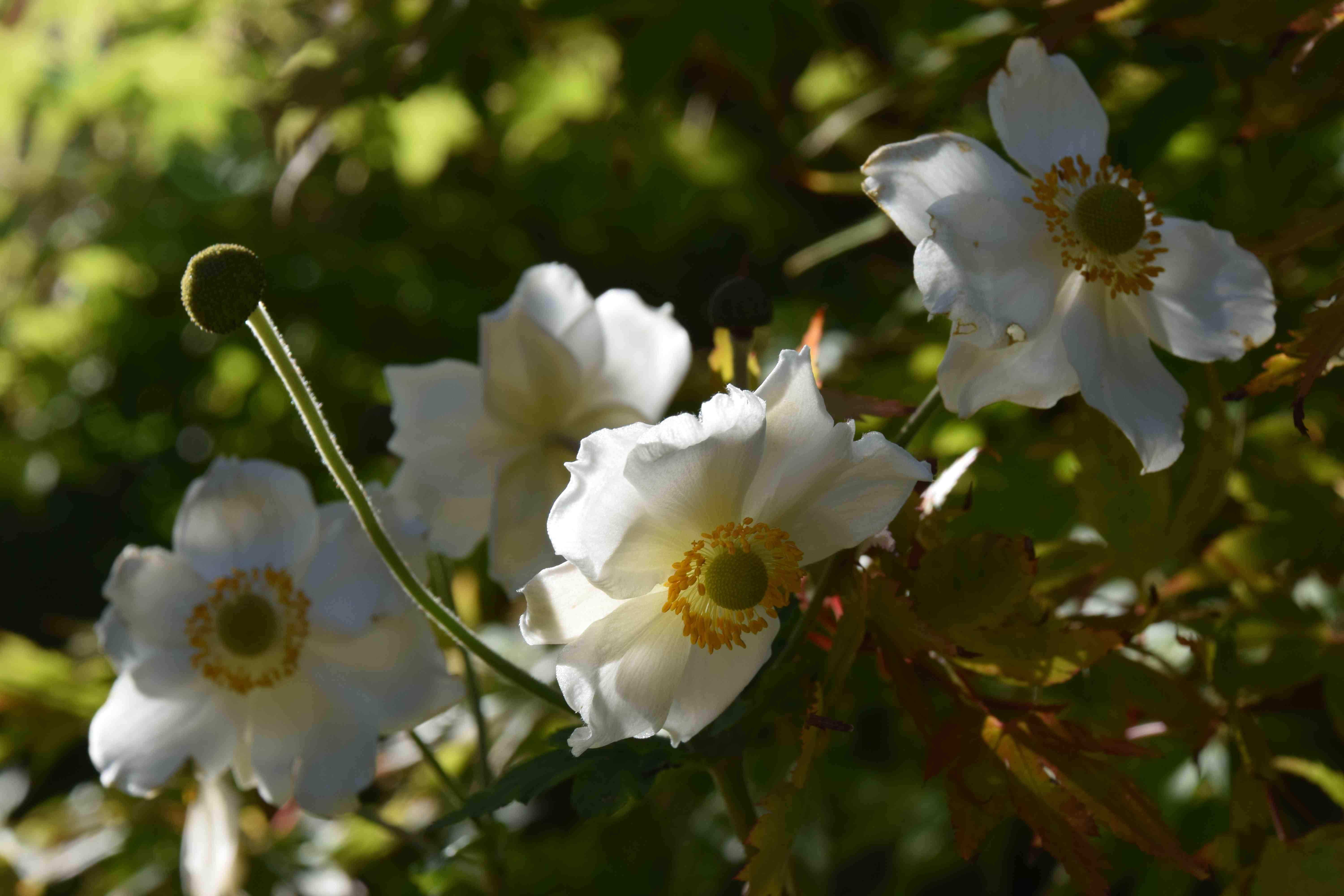 Until this week I had never really seen an ugly anemone. Whether they flower in spring, summer or autumn, whether they are herbaceous or tuberous, brightly coloured or pure white they are lovely flowers. As it is autumn I will concentrate on the currently blooming Japanese anemones. They are tall and tough, easy and adaptable and at their best when all around them is falling apart. The colour range is limited, all white and rather mauve pinks, enlivened with a ring of golden yellow stamens and a bright green button centre. Because these are Ranunculaceae and so there is that weird petal/sepal thing, in some the outer ‘petals’ are different in shape (udually smaller) than the rest which can give a rather lopsided look. They vary in height from about 60-120cm and although there have been shorter types around for a long time, I tend to prefer the taller ones. Actually, I much prefer the taller kinds because they are elegant and can even be used as cut flowers – though they will drop petals.