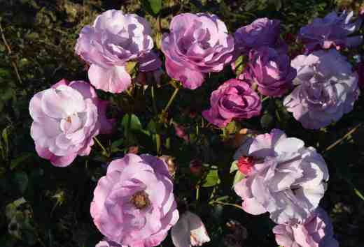 And then we come to ‘Dioressence’ (DELdiore). This is a French rose, bred by Delbard and introduced (as far as I can tell) in 1984, though I have a feeling it may be more recent. It is named after the famous perfume because of its amazing scent. The scent of the flowers is described as woody and mossy with strong geranium which is ironic of course because the ‘geranium’ in question is rose-scented pelargonium, but there we go. This is one to plant for its perfume and it is very good. The flowers are carried in small clusters, or huge clusters like this one, on strong shoots. I like the colour and the flowers are lilac, flushed with purple but I am not keen on the semi-double, rounded shape, but that is just me. One thing I have to mention is that this is the only rose in the garden that has any signs of blackspot. I will not write it off yet and it is not bad, but when I have antique roses next door that are free from disease it makes me slightly disappointed.