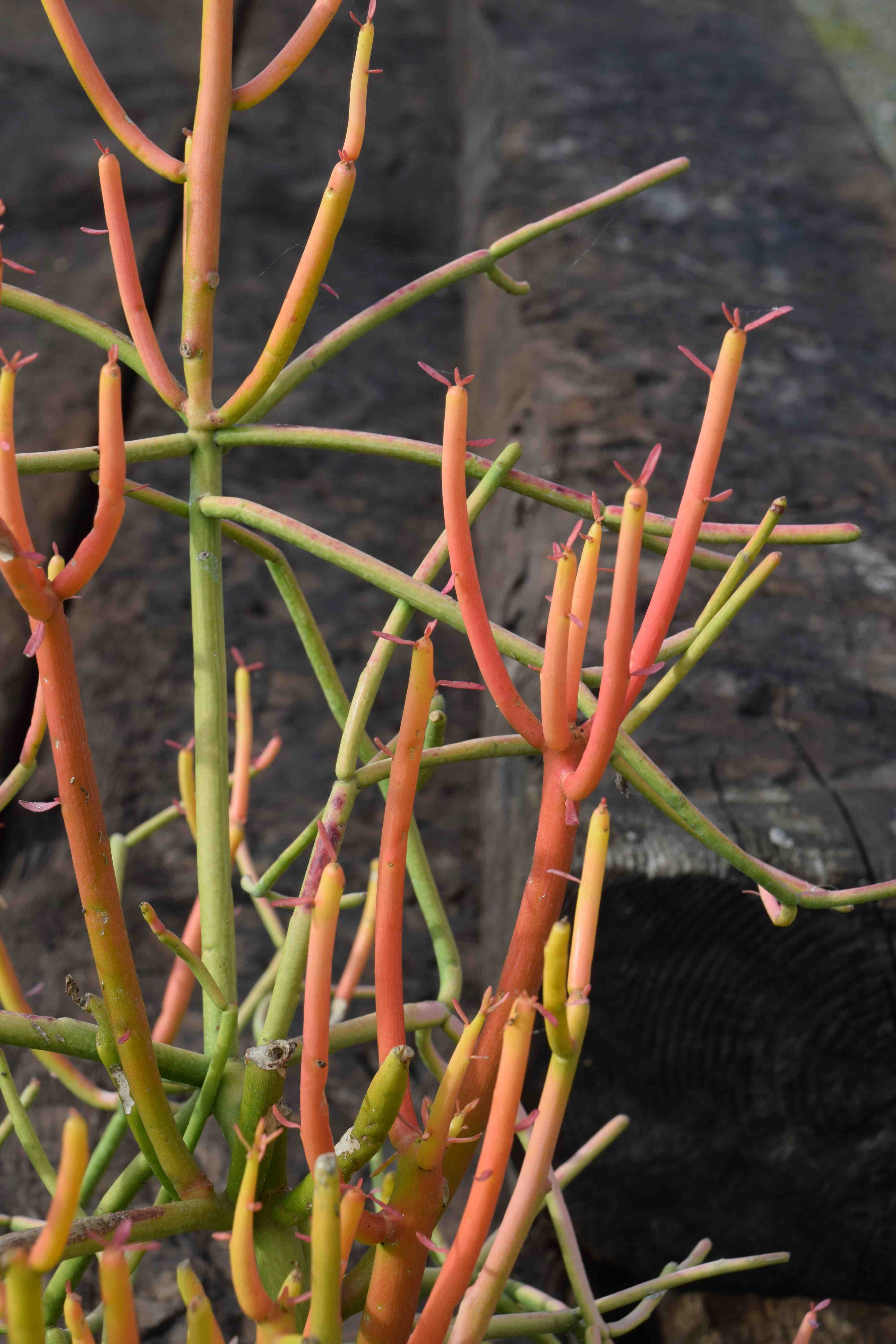 This has become very popular for the striking foiar color in landscapes in Southern California. The green form had always been around. It was known simply as ‘pencil cactus’.