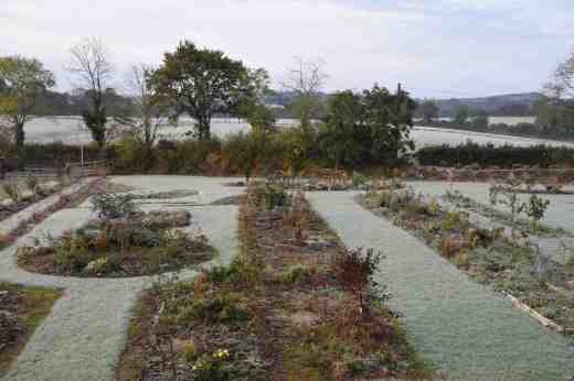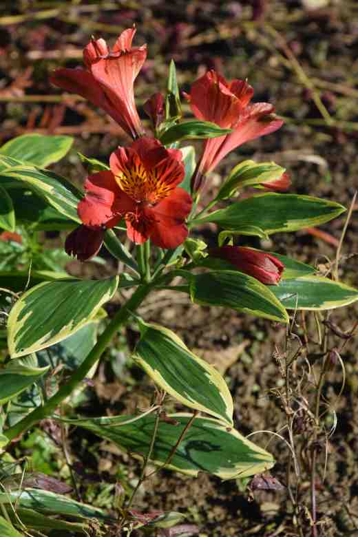 This morning we had the first real frost of the autumn. We had a frost yesterday too, though not quite as hard and it was followed by a crisp sunny day. Today it is overcast. The white grass has the effect of emphasising the shape of the new beds though the garden has a monochrome effect and any hint of colour is gone. Yet there is a bit of colour even though it will be last of the alstroemerias. I am not quite sure if I like alstroemerias much as garden plants, though they are blooming machines and have provided lots of colour in their first season. Yesterday I picked all I could find in bloom to save them from the frost. All had lots of new stems, which will now be wasted.