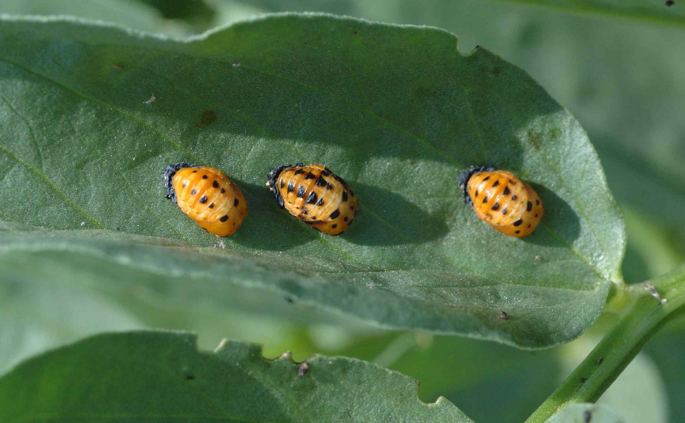 And here are some in the pupal stage, soon to hatch out as the red beetles.