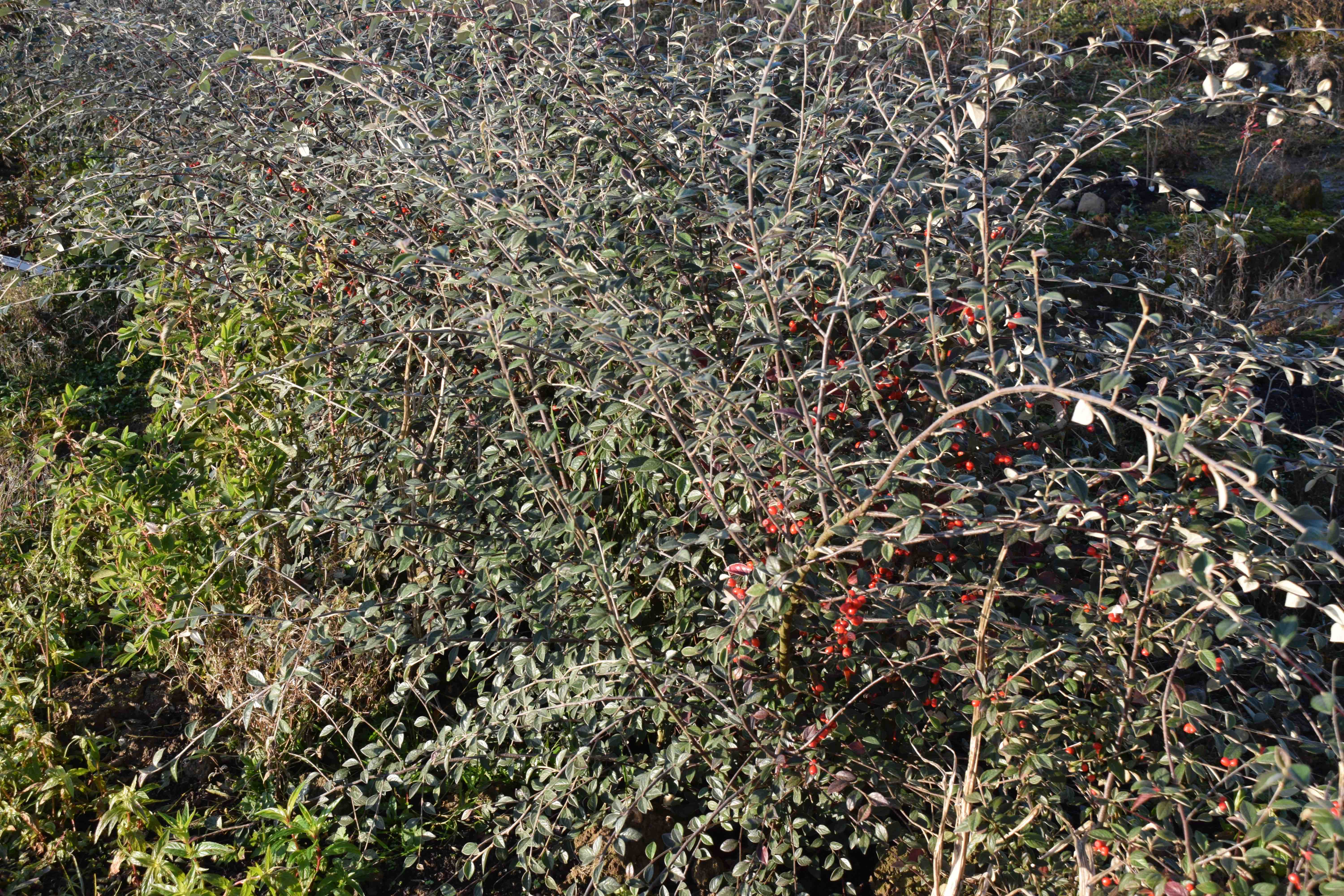 It was ironic that, because I am not a huge fan of cotoneasters, the first plants that were planted here in the new garden, were cotoneasters. They were not even rare or special. It was a hedge of bare-root, Cotoneaster franchetii. I chose it because it is a tough plant and I wanted a hedge that would be good for wildlife and might be able to cope with the awful soil and windswept site. It just shows how much pleasure a common plant can give because I have been encouraged by the growth of the plants and now they are covered in berries. Of course the blackbirds have not eaten the berries, presumably because I don’t want to. But there is still time.