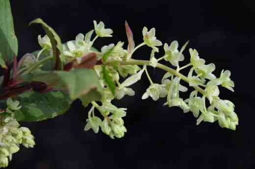Native of W. China; discovered and introduced in 1908 by Wilson, according to whom it is rare in the wild. It is not a showy plant, but is interesting and welcome in flowering as early as February or March. Male plants are more ornamental than female, the racemes being longer and the flowers larger. Award of Merit 1912.