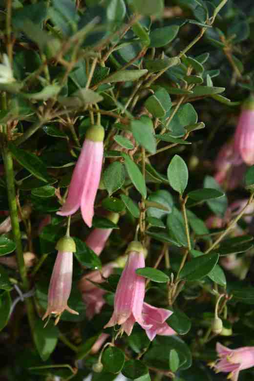 The same is true of my latest purchase; Correa pulchella. At least that is what it is labelled as. I am not sure if it is C. pulchella since that is supposed to have orange blooms and mine is a beautiful pink. It is native to coastal areas of south east Australia where it grows on alkaline soils. Correas (there are 11 species) are often called Australian fuchsias, a very apt common name since they are from Australia and the flowers do look a bit like fuchsias – at least they have four petals and hang down, like most, but not all, fuchsias. They are in the rutaceae, which is an interesting family that includes citrus, skimmia and rue and correas have pairs of leaves along the stems and are generally twiggy, evergreens that will survive outside in this part of the world if planted in well-drained soil in full sun. They make natural companions for woody herbs and silver-leaved plants. The most reliable is probably C. backhousiana with buff-coloured blooms from late autumn to late spring and although not the most showy it is a lovely thing to have in winter. I have experimented with several over the years, usually planted in raised beds or against sunny walls and they survived most winters in the East Midlands of the UK. I think they will do well here if the soil is not soggy. Unlike chimonanthus, correas look good all year, with neat and attractive leaves. ‘Dusky Bells’ has been waiting in a pot to be planted out and both will go into raised beds now that I have the compost to improve the soil and the sleepers to make the beds. Correas also make good plants for pots and I really could do worse than put them in pots for a year so I can have them by the sunny side of the house for colour next winter before committing myself.