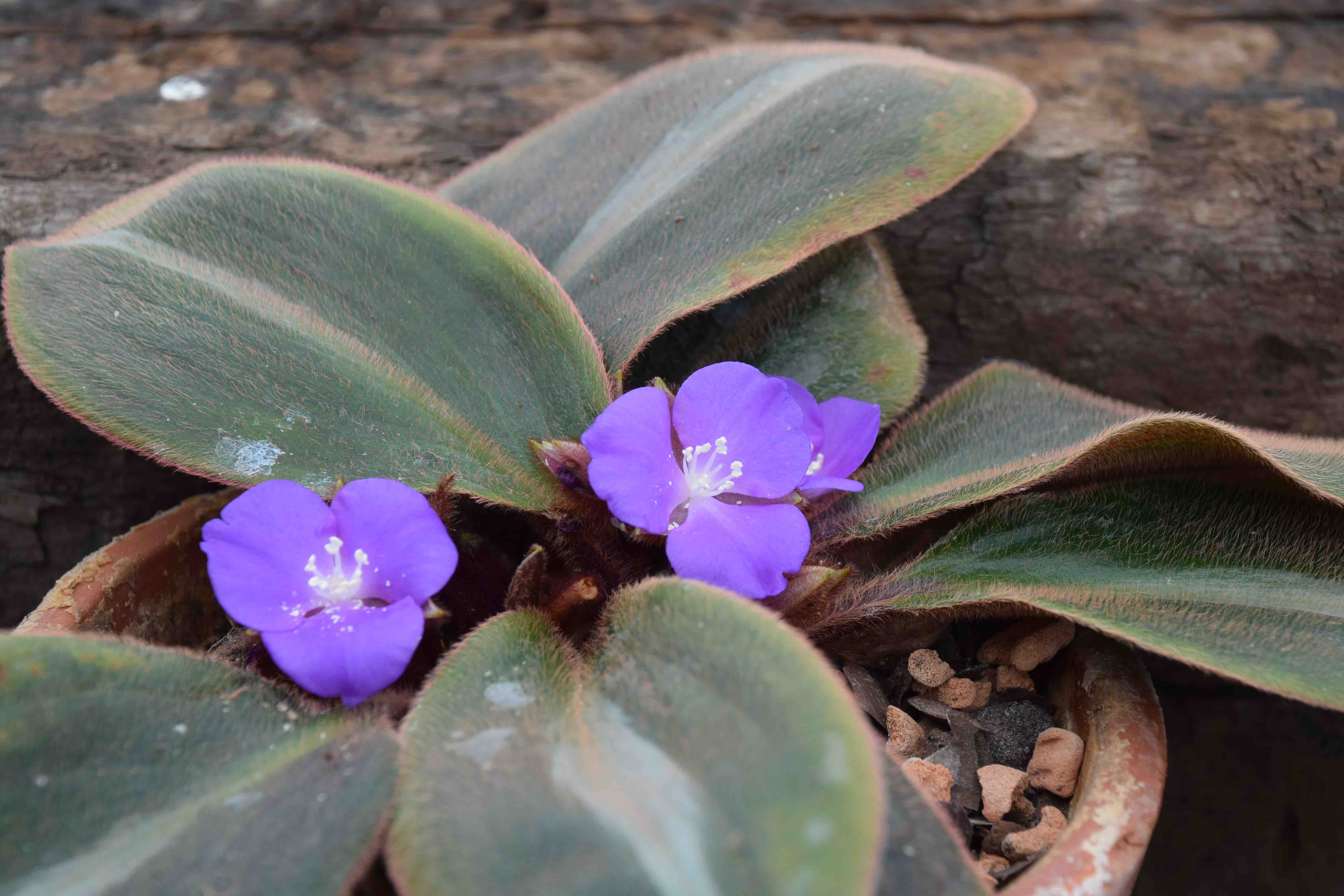 The most overlooked of all my plants is Siderasis fuscata. I have had this plant for at least a decade and I am not sure where I got it. It has waxed, then waned in my company and I am glad I still have it because it is a lovely thing. It is a member of Commelinaceae, the family best known for tradescantias. I have a real liking for the family and, perhaps, when life settles down and all the jobs are done, I will be able to collect some. They all have spirally arranged leaves and the characteristic three-petalled flowers, usually with furry stamens. They are really fascinating. Typically, the only ones I am not keen on are the hardy tradescantias which are a bit scruffy unless grown really well. Anyway, Siderasis fuscata is a tender plant, native to south east Brazil and is commonly called the brown spiderwort, which is not a very pleasant name but does describe it well. The broad leaves are covered in soft, brown hairs, especially on the underside and have a silvery stripe down the centre. The plants are stemless and form a low clump. My plant initially grew like mad and it ended up in a large 25cm pot. It was then rather taken for granted and I overwatered it and it responded by rotting. I managed to pull it apart and save a small piece and I potted it in very open compost with lots of perlite in a terracotta pot so I would not be as stupid again and it has shown its satisfaction by growing and, this year, flowering quite freely.