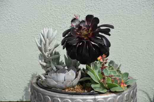 And the echeverias, I wrote about last week, have found a home. Some went into this silvery pot. It has no drainage holes and is rather deep so they are planted in a pot that just fits into the top. I know you can see the black pot at present, which bothers me, but as they grow it will be hidden. And I can lift out the pot, so I can protect the plants from frost, in autumn.