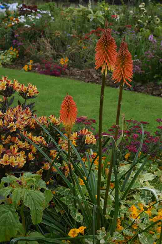 The borders have filled up very nicely and all is looking splendid. Persicarias – make me run a mile. I would fear them in the garden. Kniphofias are doing well here. K. caulescens into flower at present. I have one which flowers in mid-winter.