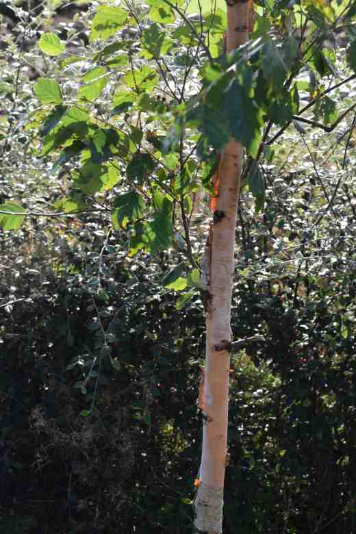 The first trees I planted, and I have planted more in subsequent years, were birches. Betula utilis ‘Wakehurst Chocolate’ has done very well though it is supposed to be dark chocolate rather than creamy milk. But the bark is starting to look lovely so I am not complaining.
