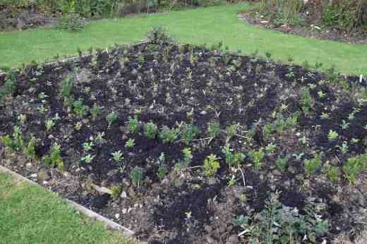 The summer annuals are removed from the formal bed and it is filled with forget-me-nots for spring. Work in the garden is all about the next season.