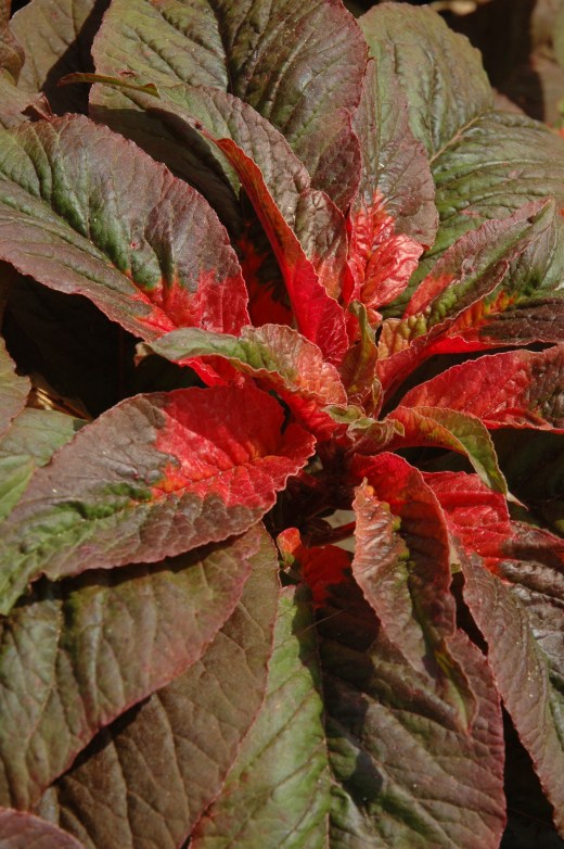But there are other amaranthus which are very different. Mostly variants of A. tricolor, these are lower, making rosettes of foliage, with bright colours, usually contrasting shades at the base of the young leaves. The most popular are red or orange but others are bright yellow. Looking rather like monstrous poinsettias, these are striking garden plants. The trouble is that they need plenty of sun, warmth and feed but also heat. Perhaps because I have never treated them as well as I should I have to admit that I have rarely had very good results with them. The only times I have was when I prepared the soil well, lavished water on them at first and we had a good sunny spell. I think they are amazing but not beautiful enough to risk time and effort on every year.